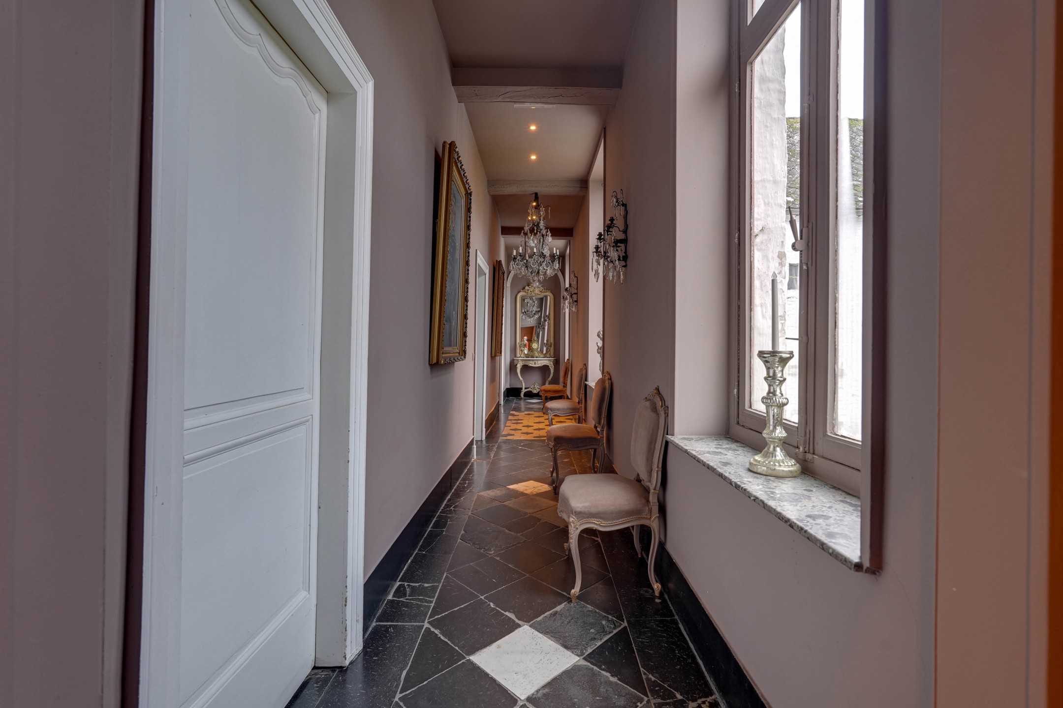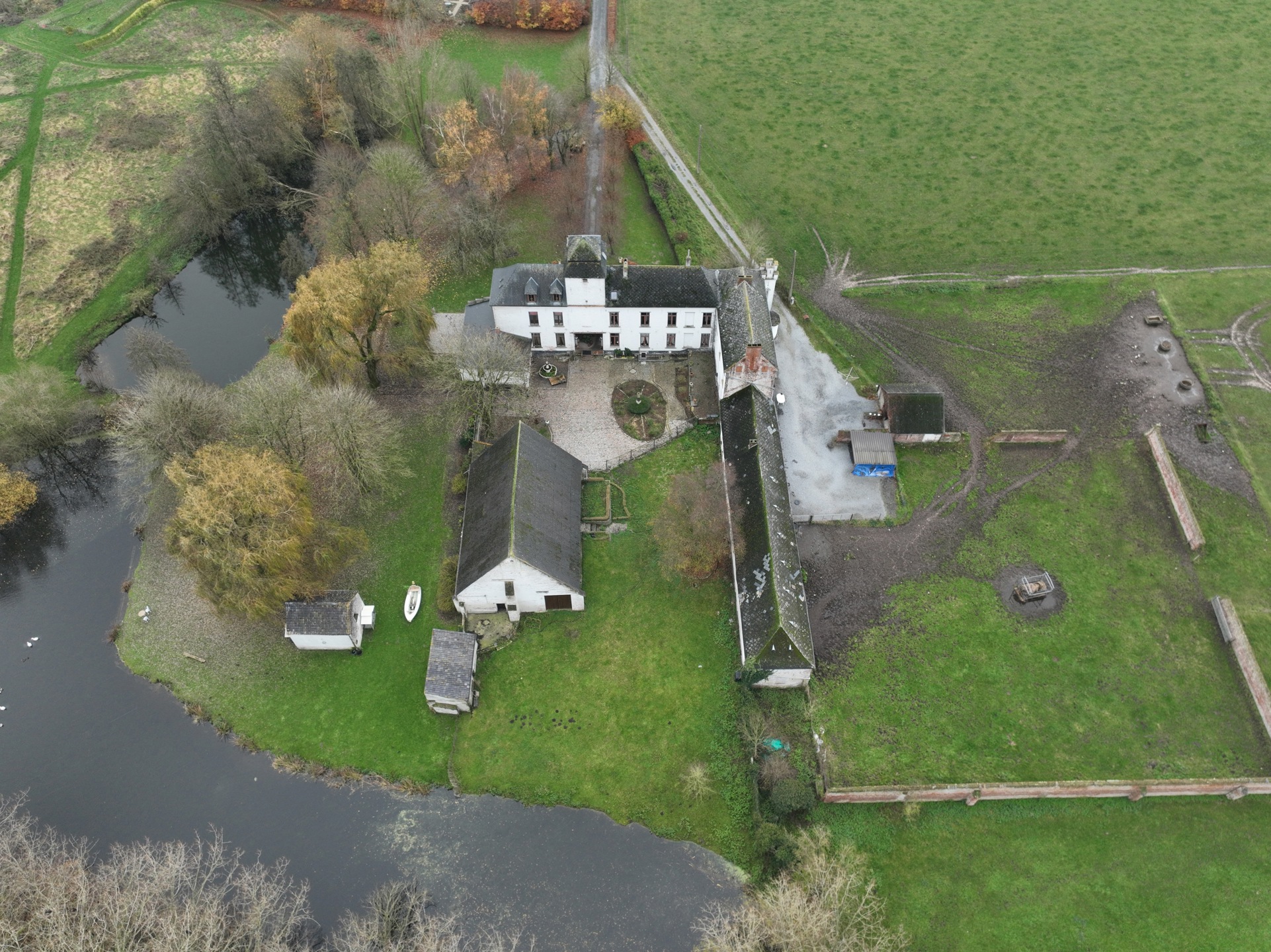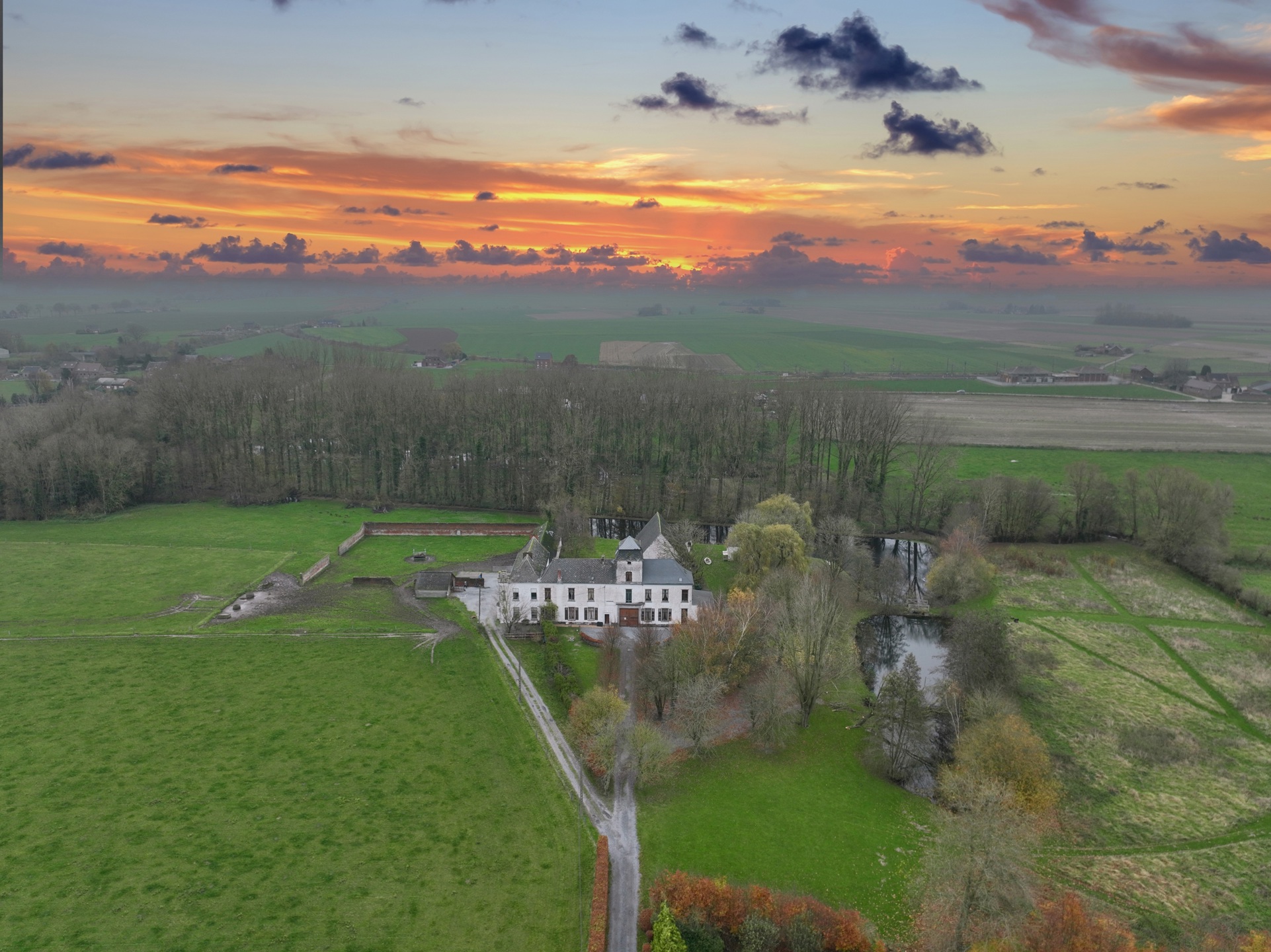 Au bout d’une longue drève privative, la vaste demeure (7 chambres, salons multiples) est posée au sein d’un paysage champêtre entre verdure, plan d’eau et alignements de peupliers. Doté d’un portail néoclassique en pierre bleue et d’une tour-colombier, l’immeuble principal témoigne d’un cachet indéniable.