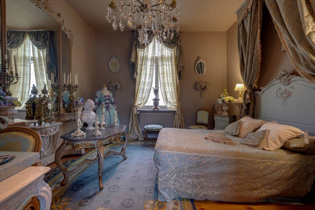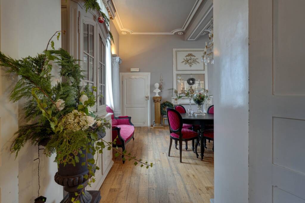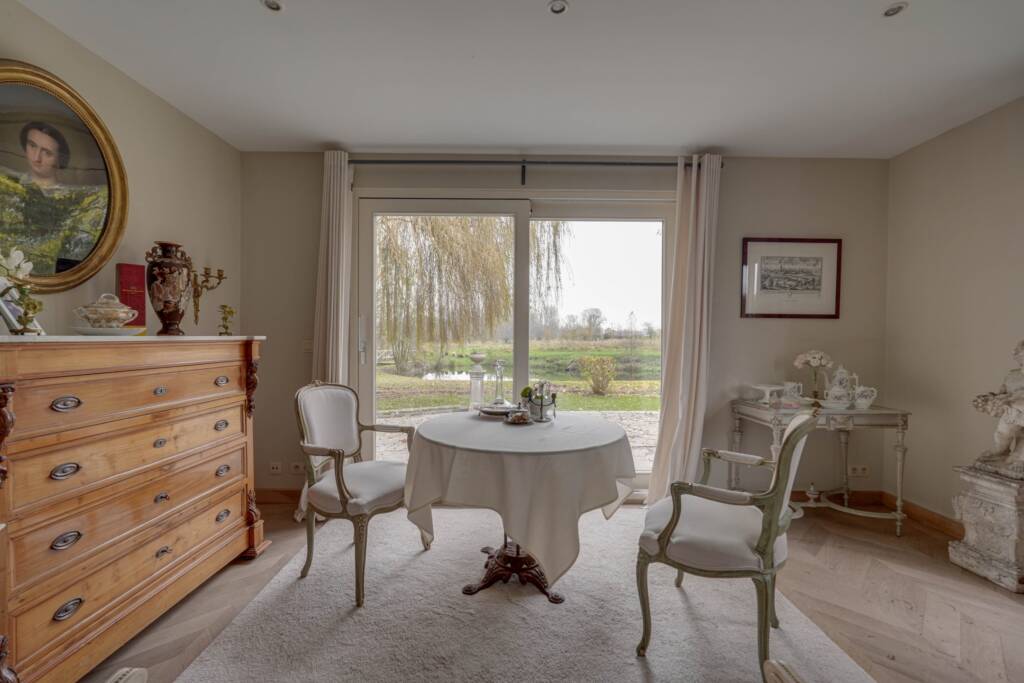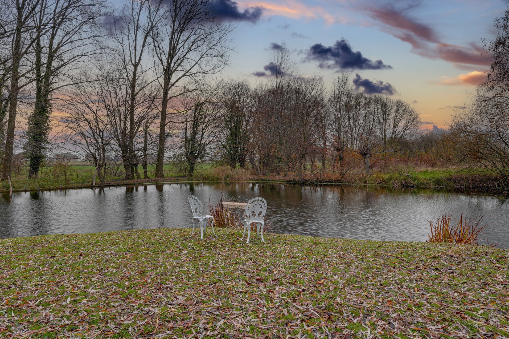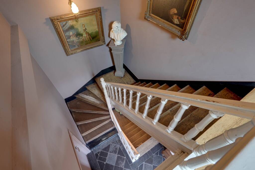 Au bout d’une longue drève privative, la vaste demeure (7 chambres, salons multiples) est posée au sein d’un paysage champêtre entre verdure, plan d’eau et alignements de peupliers. Doté d’un portail néoclassique en pierre bleue et d’une tour-colombier, l’immeuble principal témoigne d’un cachet indéniable.
