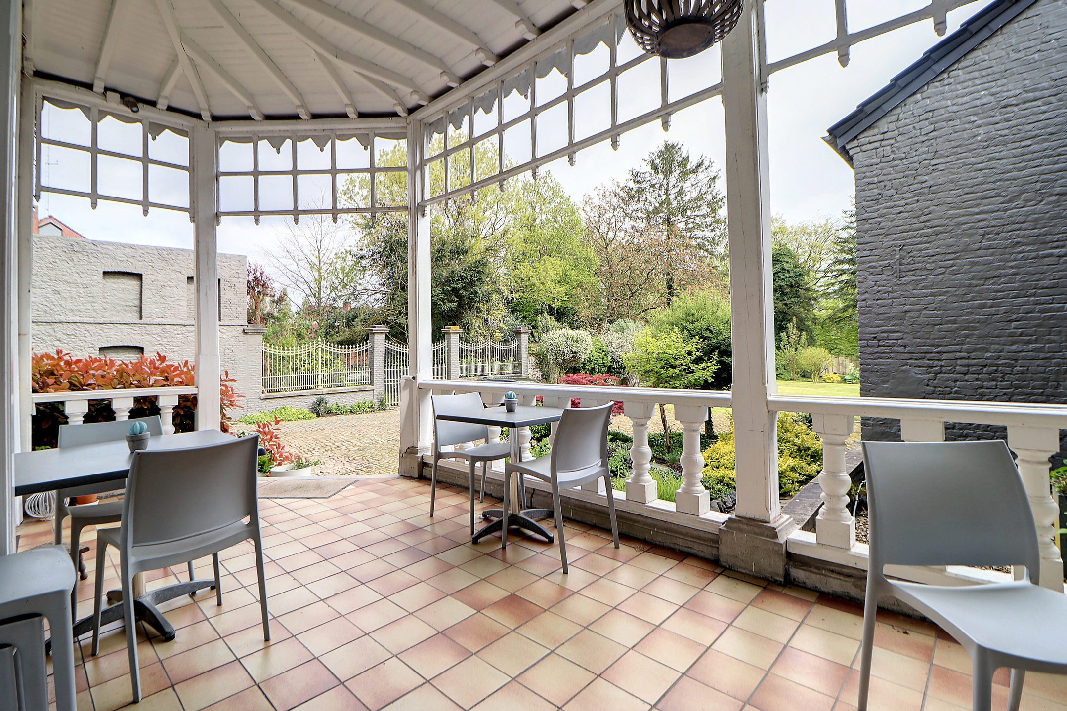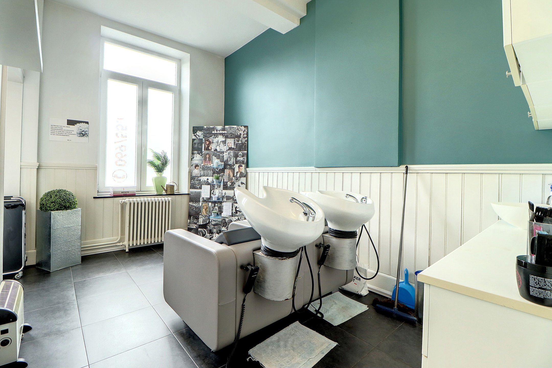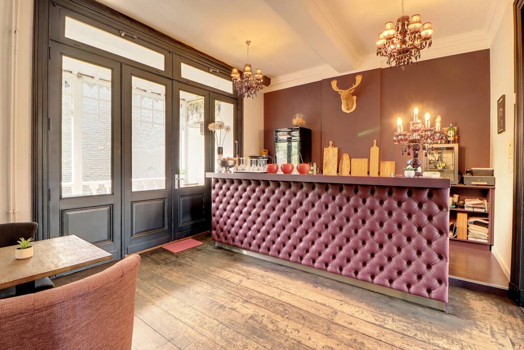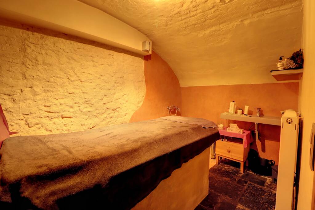 Rez-de-chaussée : Vaste hall d’entrée donnant accès à un espace bar/salle de réception pouvant accueillir +/- 32 personnes, un grand espace beauté de 36 m² avec salon de coiffure, accueil de la clientèle et espace de lavage, une cuisine fonctionnelle idéale pour le personnel, ainsi que deux pièces de rangement, jolie terrasse d’époque couverte donnant sur le jardin.