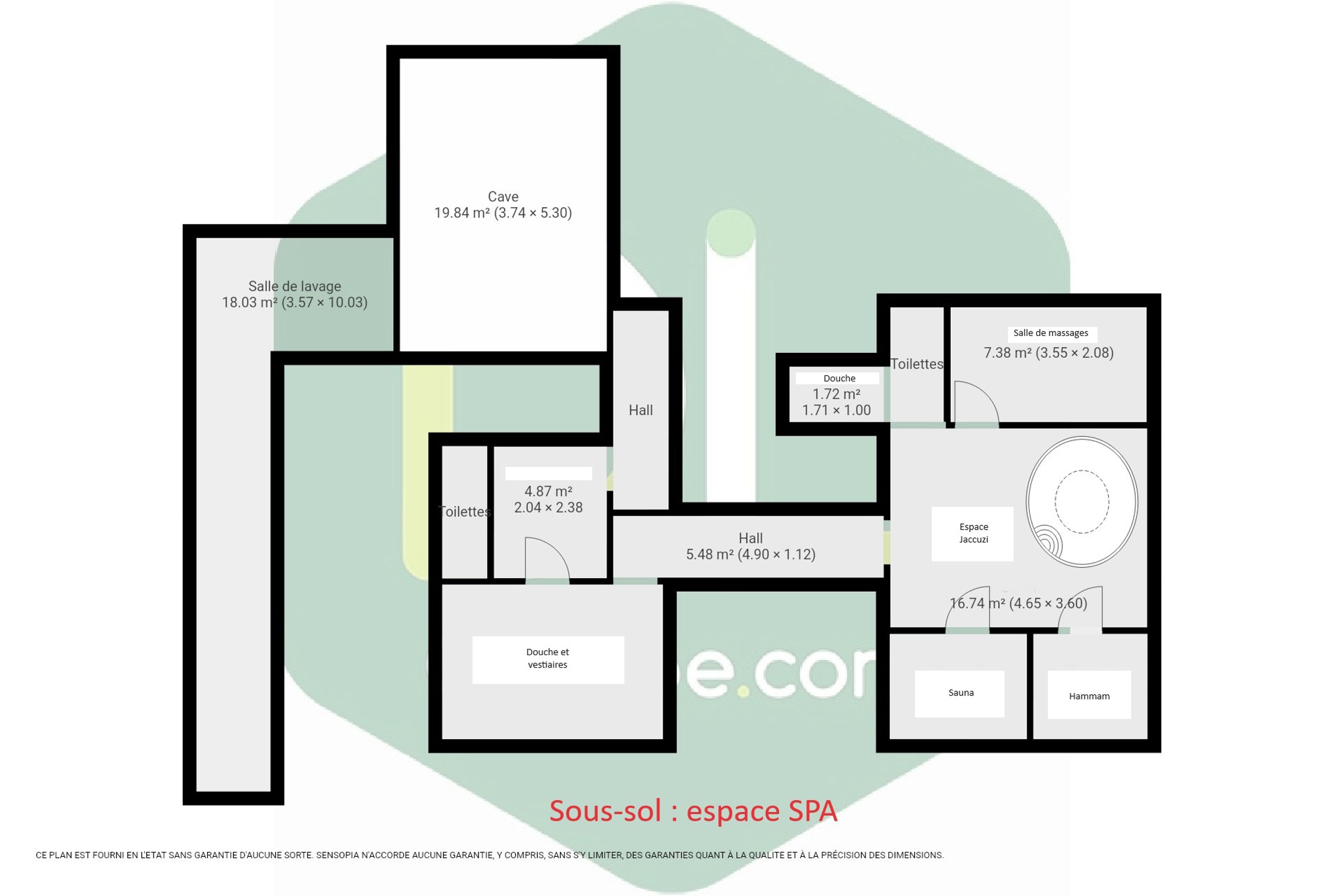 Sous-sol : Aménagé en SPA, avec une entrée directe par le hall d’entrée. Cet espace bien-être comprend un vestiaire avec douches, une salle avec jacuzzi, un sauna, un hammam, une salle de massage, une douche et des WC séparés (H/F).