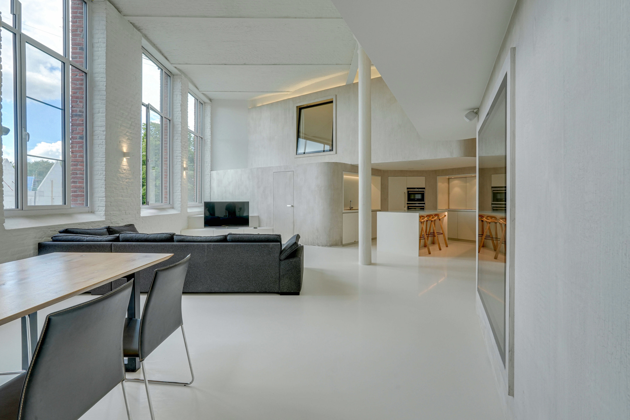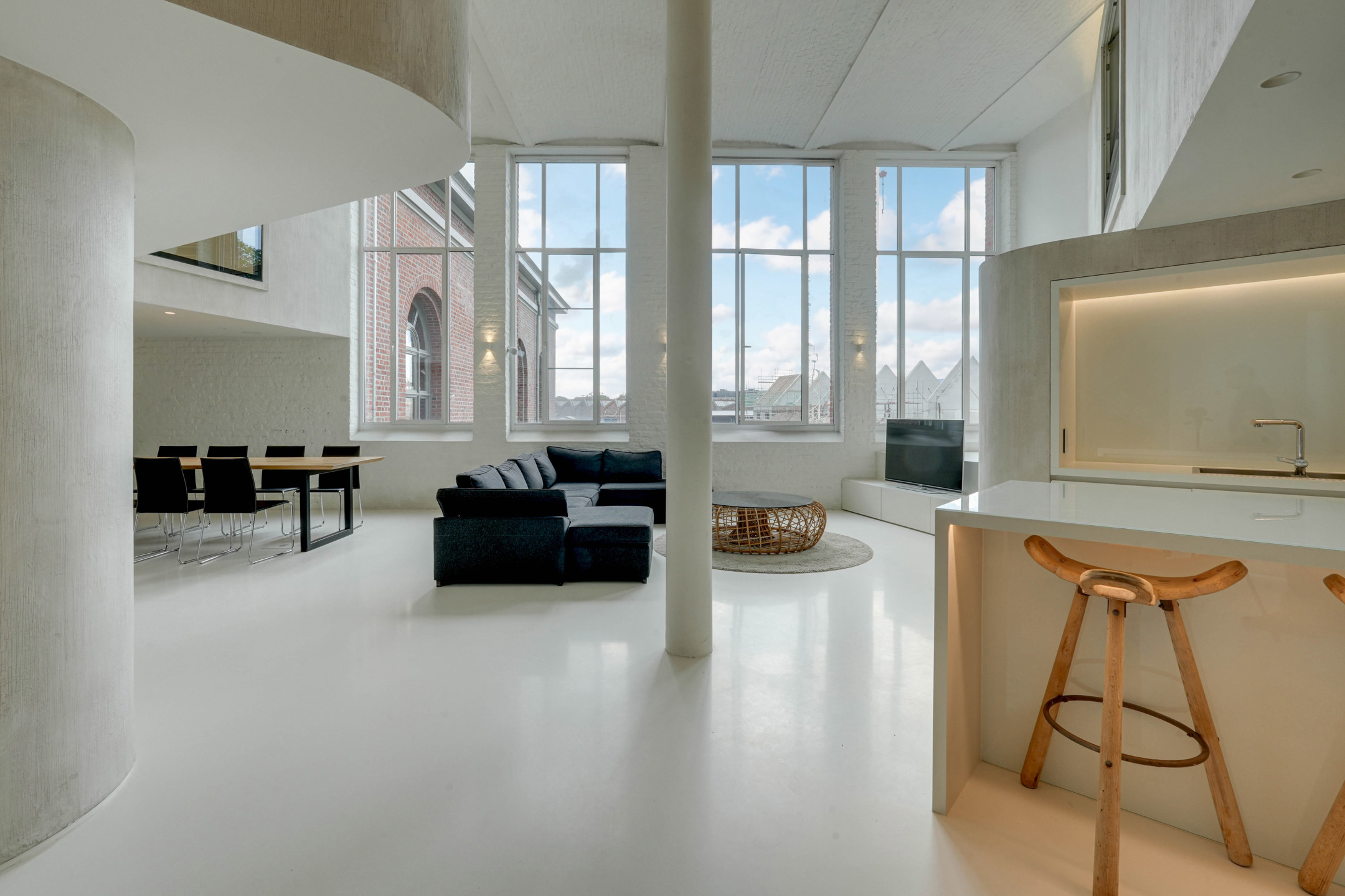 Grâce à ses hauts plafonds et à ses grandes fenêtres, le loft bénéficie d’une grande ouverture et d’une abondance de lumière naturelle.