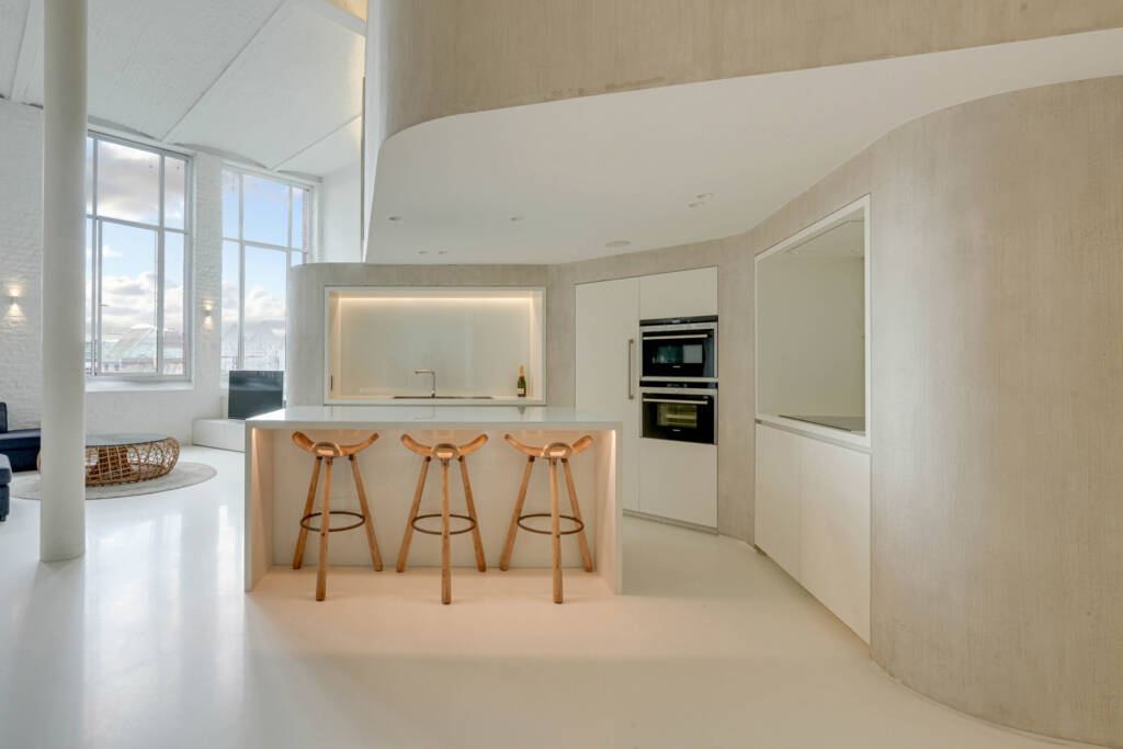 D’une surface habitable de 242 m², le loft dispose de deux chambres spacieuses, chacune avec sa propre salle de bains.