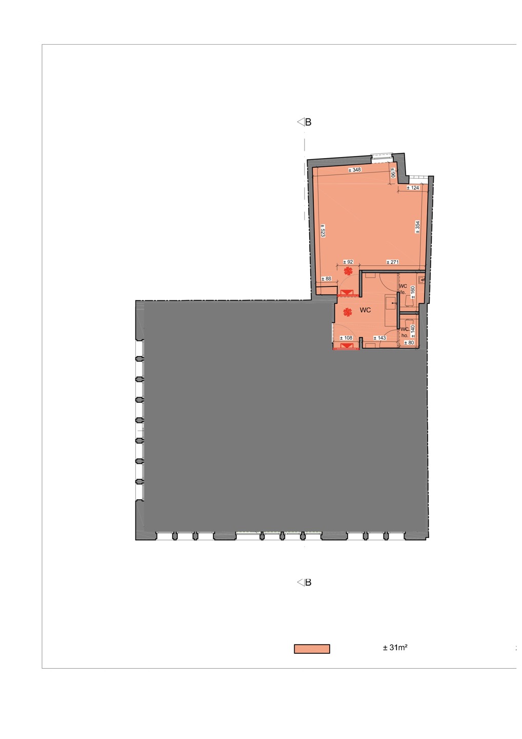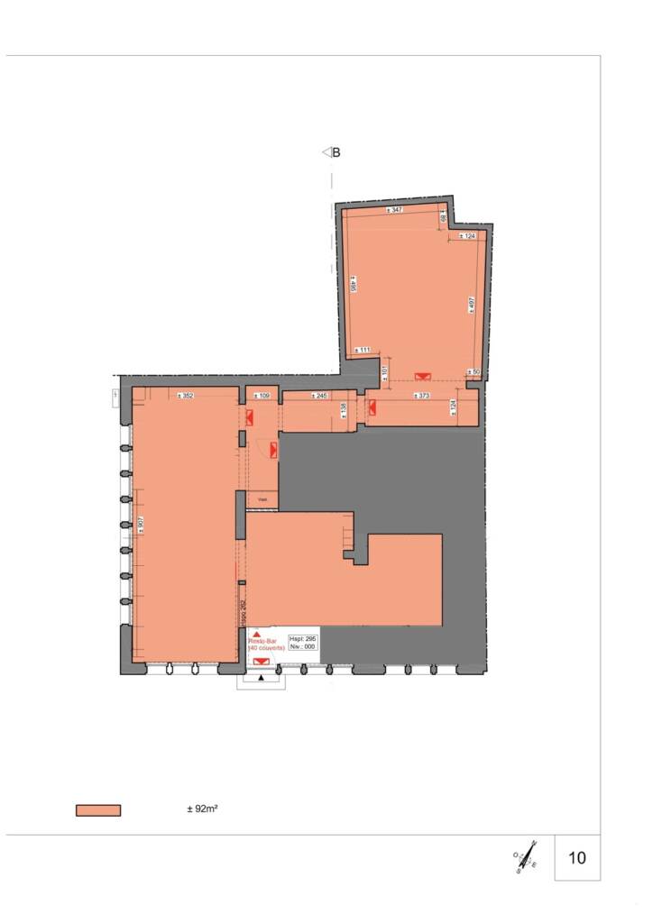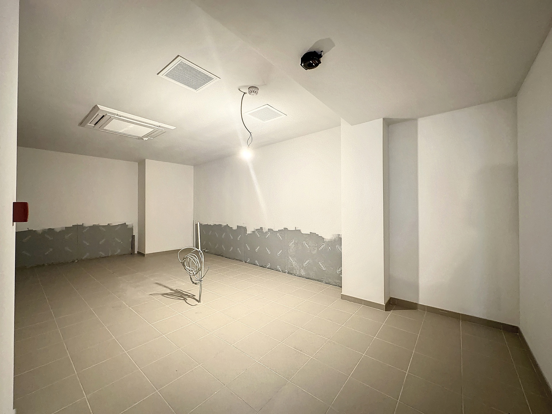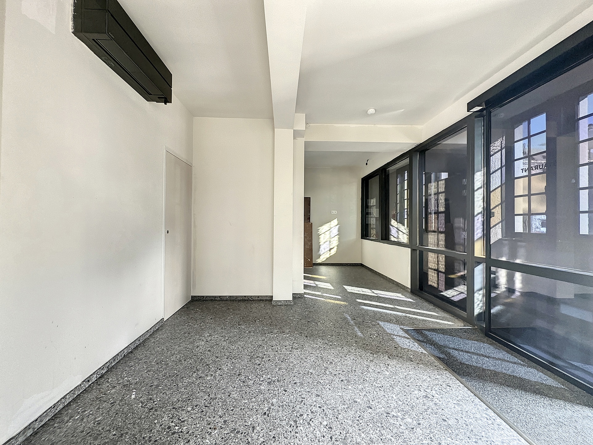 Beau hall d’entrée avec porte automatique donnant directement accès la luxueuse surface principale de 92 m². On imagine aisément une zone d’accueil, une aire d’exploitation principale et une réserve (stockage / chambre froide / cuisine / …). Air conditionné. Toilettes hommes et toilettes dames. Second espace de stockage / réserve de 21 m².