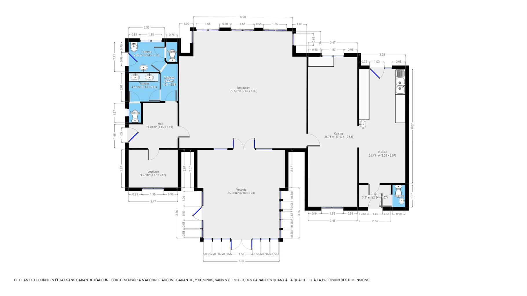 Une cuisine professionnelle ainsi qu’une chambre froide s’ajoutent au REZ de chaussée.