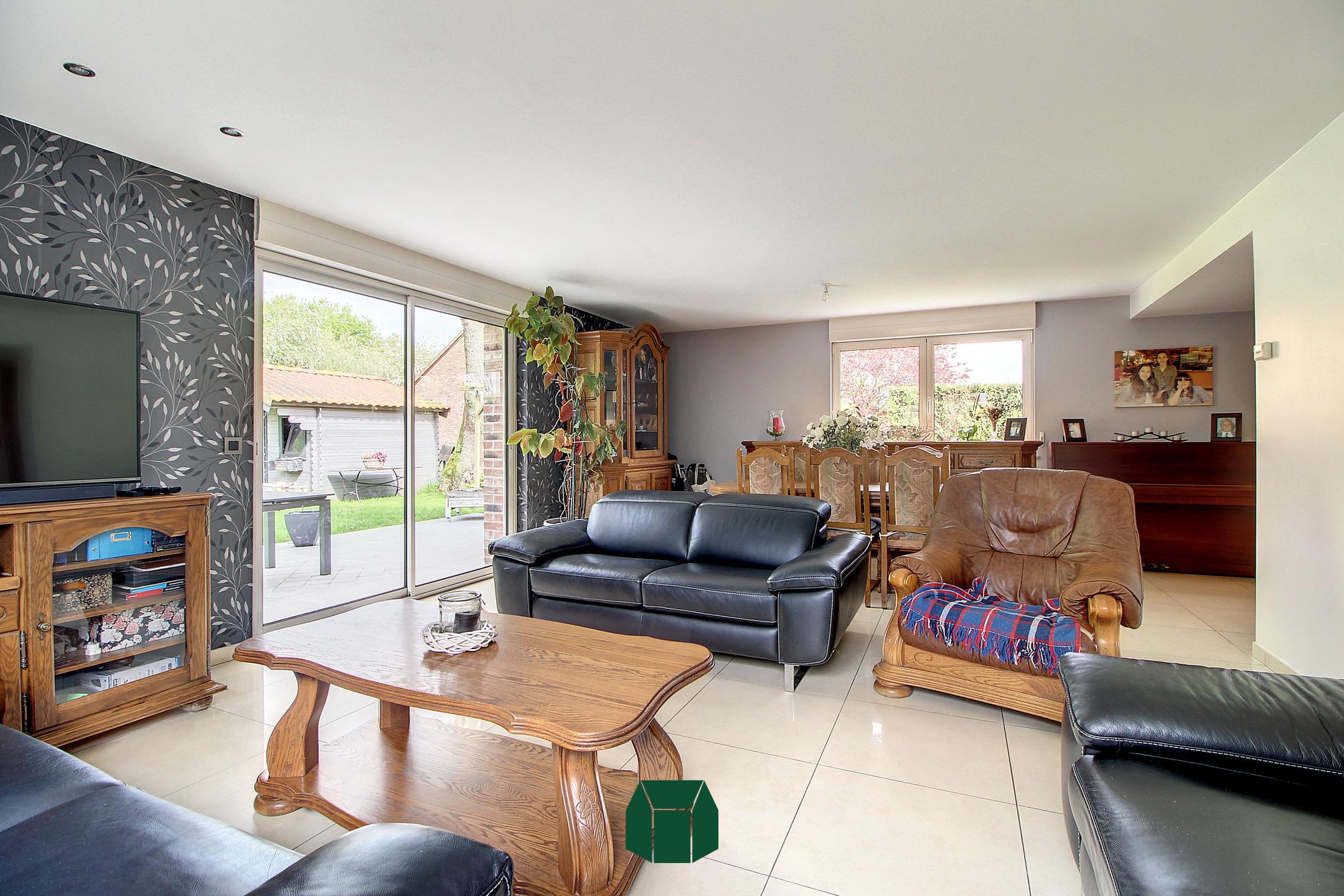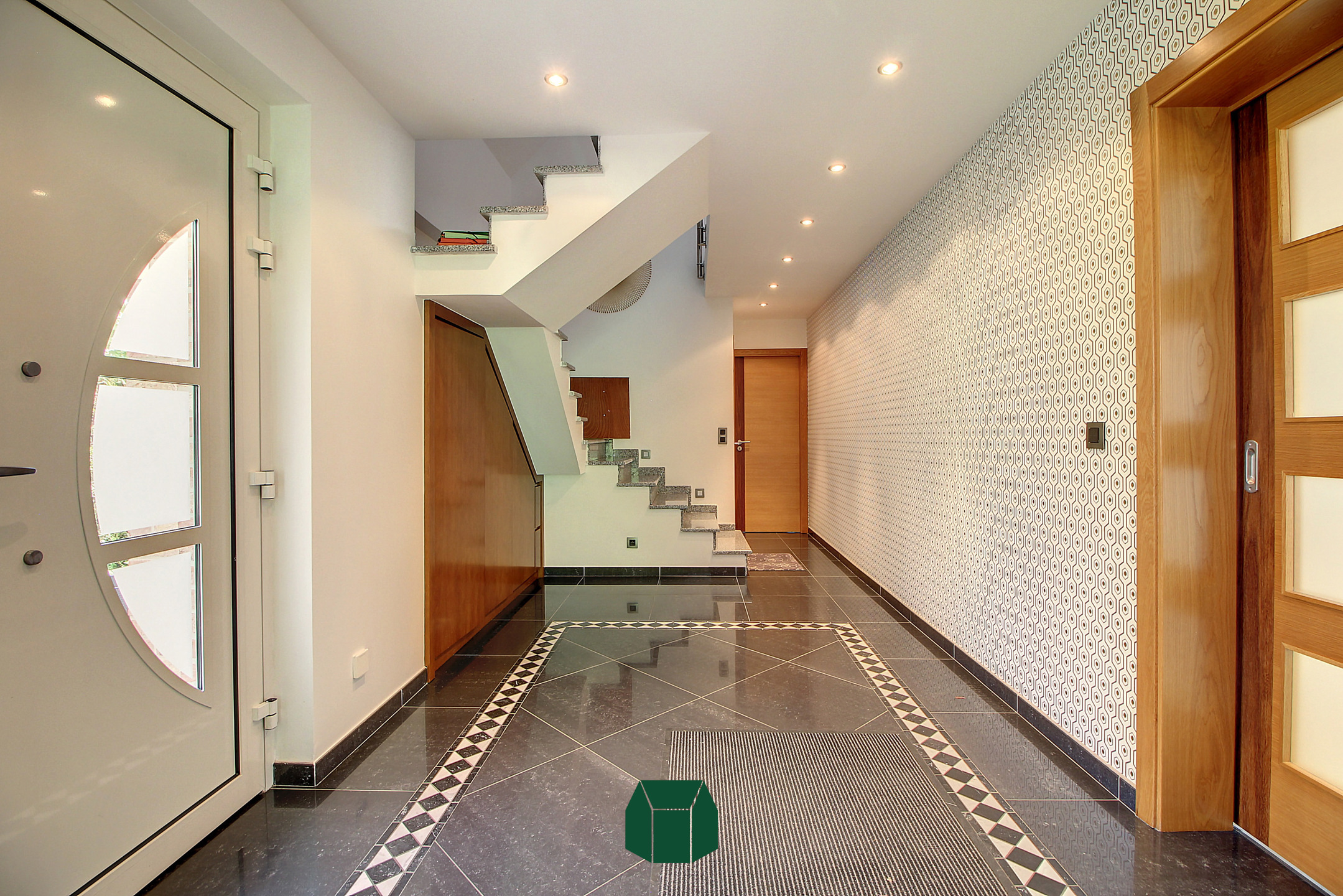 Le bien se compose d’un vaste hall d’entrée avec escalier apparent, desservant un espace séjour ainsi qu’une cuisine équipée avec un coin repas.
