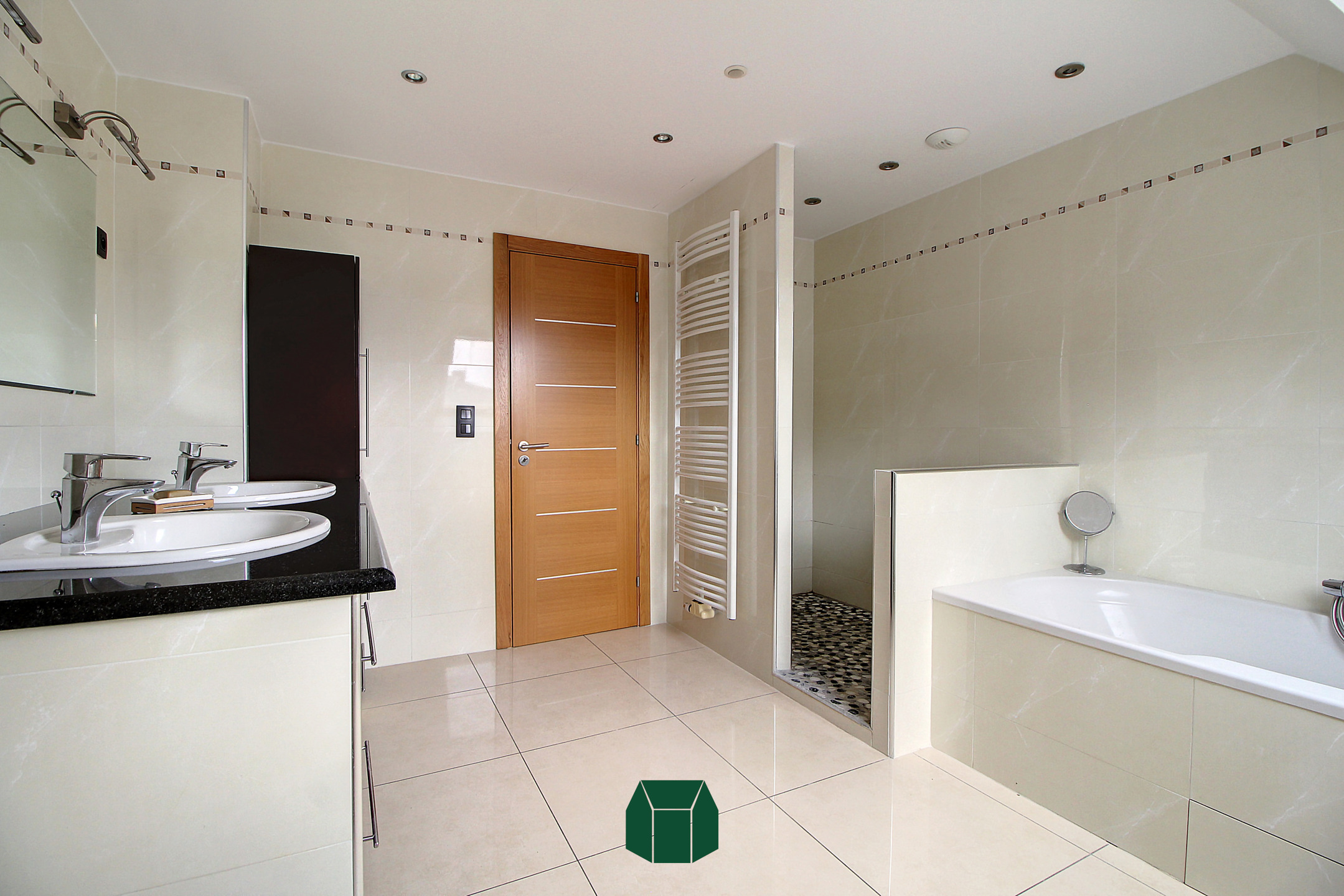 Vous retrouverez également une chambre et son coin salle de bains au rez-de-chaussée, ainsi qu’un garage de près de 30m² avec son espace buanderie/chaufferie.Le splendide escalier en granit vous amène au premier étage se composant d’une suite parentale, 3 belles chambres supplémentaires et chacune avec dressing, une salle de bain faïencée avec douche italienne, baignoire et double meuble lavabo. Le hall de nuit accueille également un bureau.