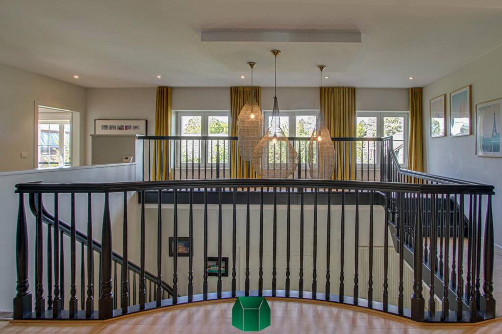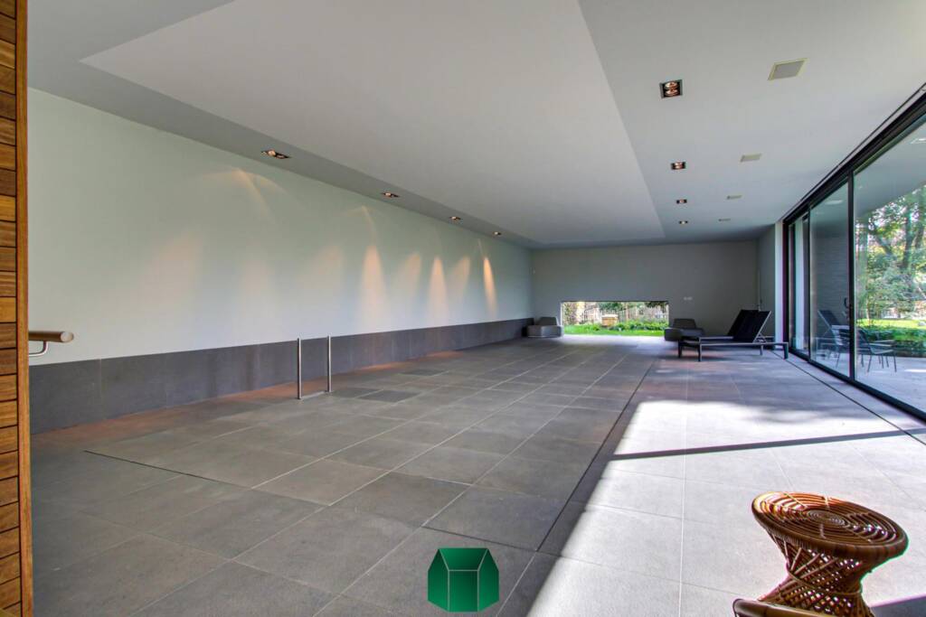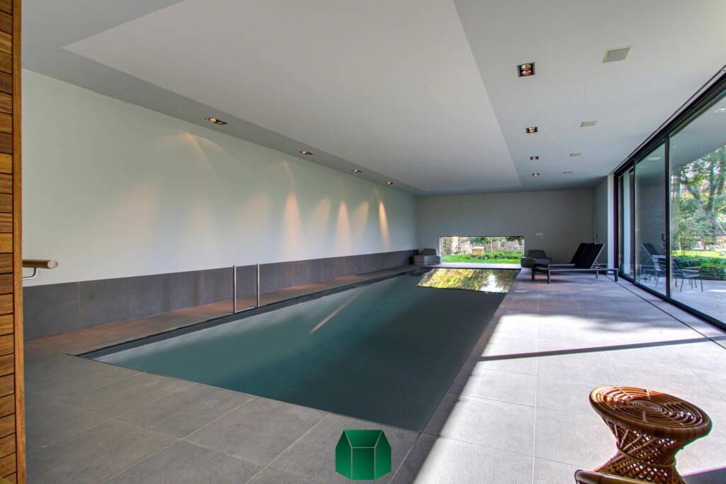 Le rez-de-chaussée se compose d’un vaste hall, un bureau, un double garage, une pièce privée avec cave à vin, vaste séjour, cuisine en U haut de gamme avec une seconde cave à vin, piscine intérieure à fond amovible avec hammam et douche.