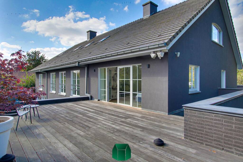 Extérieur : une terrasse d’hiver, une terrasse, un vaste jardin avec arbres fruitiers et places de parking.