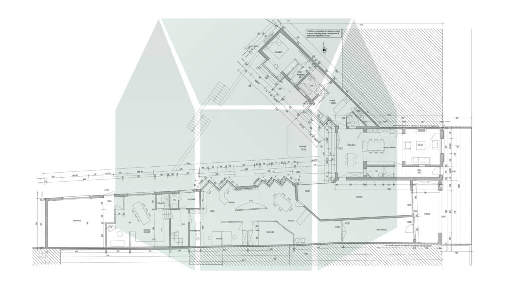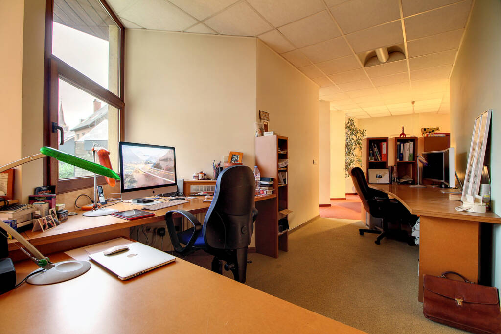 L’habitation (avec garage) offre une superficie de + de 250m² et la partie professionnelle de + de 215m².