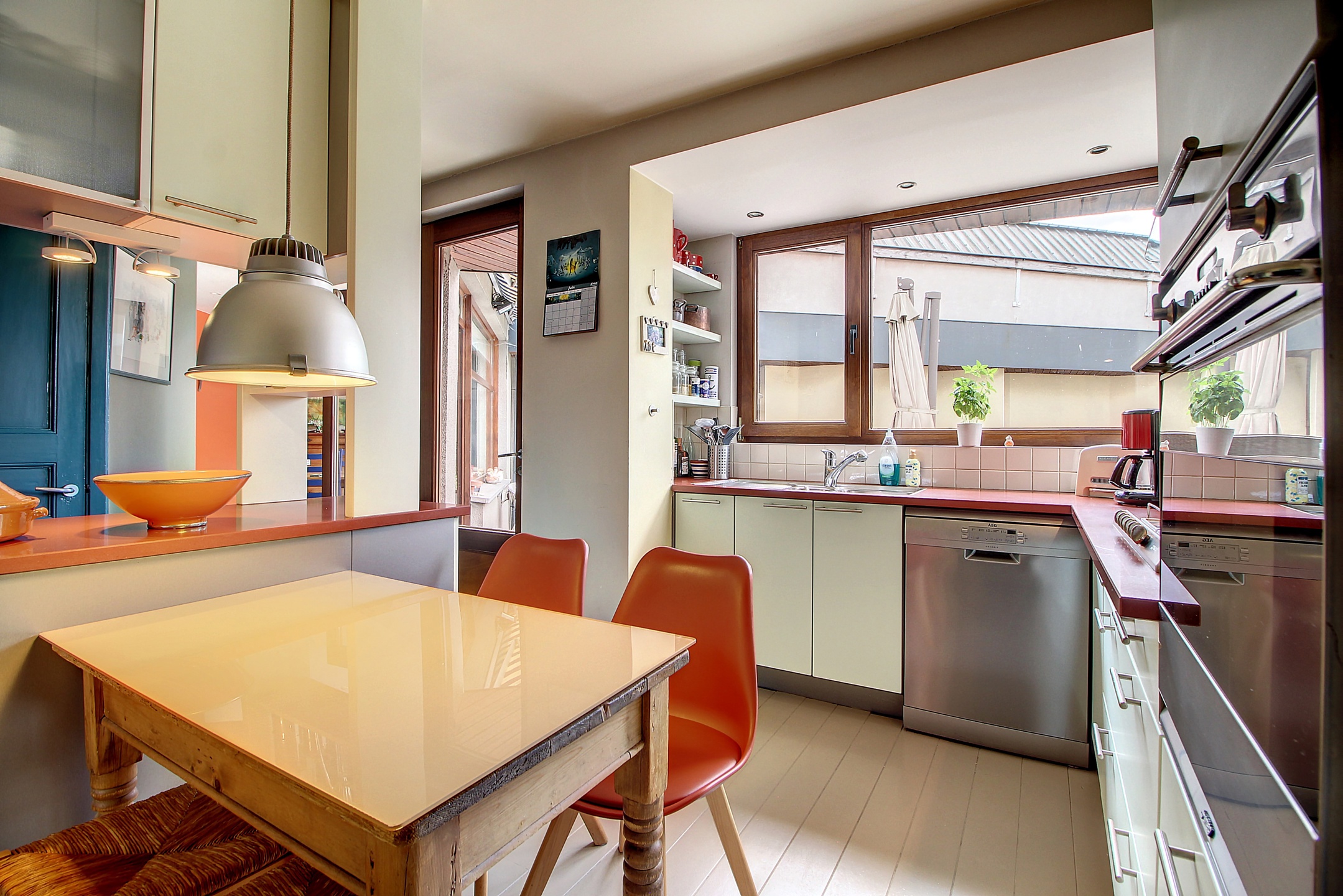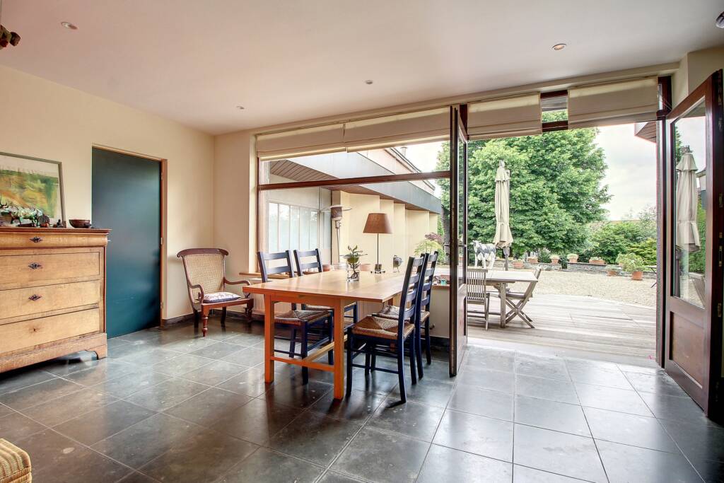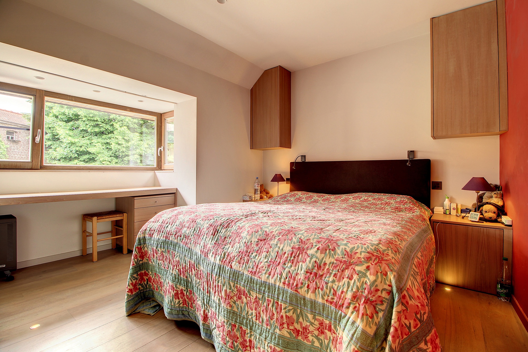 Spacieuse habitation avec bureaux/atelier, garage et jardin. L’habitation se compose d’un hall d’entrée avec wc, d’un living de +/- 45m², et d’une cuisine contemporaine totalement équipée. L’espace parental du rez comprend la chambre, la salle de bain et le dressing. Au 1er, 2 chambres, salle de bain et wc. Et enfin une chambre de +/- 45m² aménagée au second. Un garage (avec espace buanderie) de + de 60m². Les bureaux/atelier composés d’un hall d’entrée, de plusieurs bureaux, kitchenette, wc, chaufferie et d’une vaste pièce de rangement offrent une superficie de +/- 215m². L’ensemble donnant sur un grand jardin calme et ensoleillé.