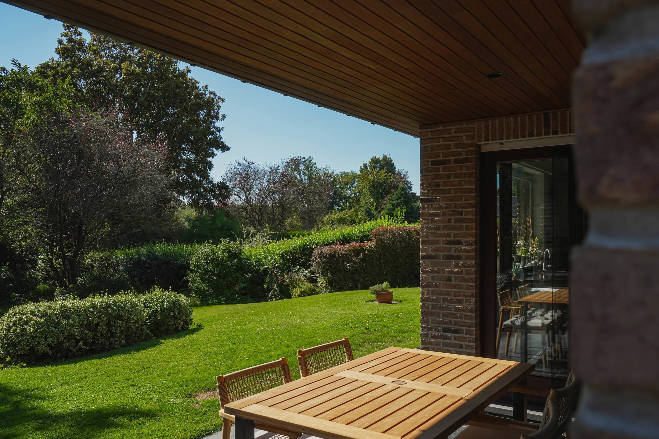 A l’extérieur vous profiterez d’un jardin arboré avec terrasse (en partie couverte) et de deux places de parking.