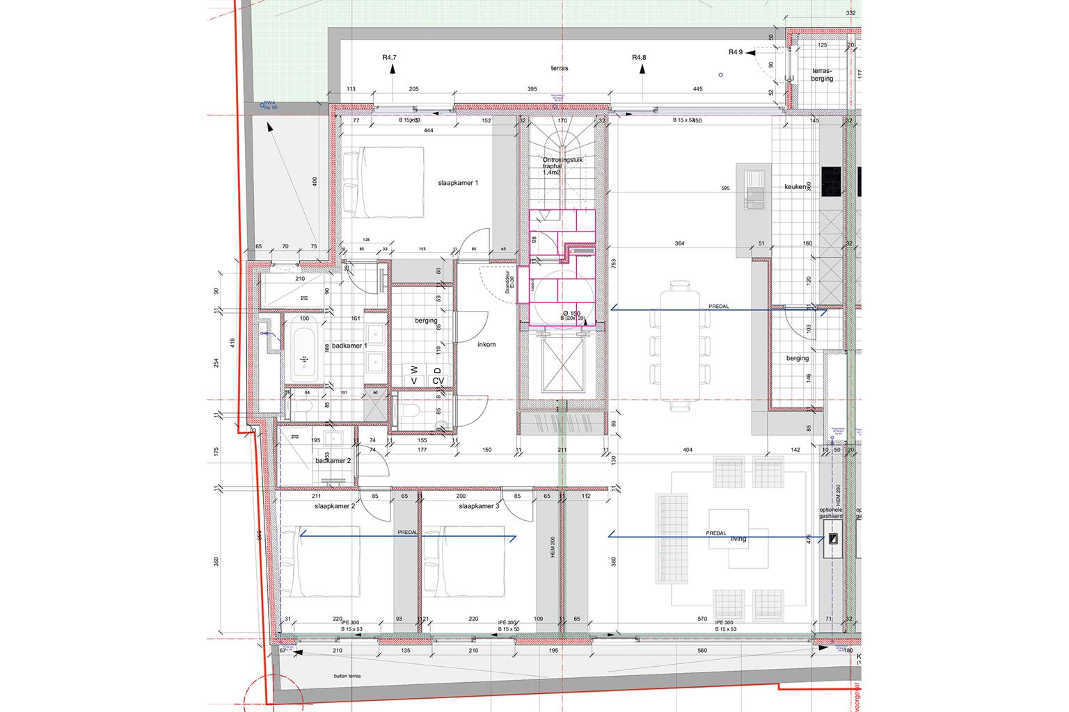 Penthouse 3 chambres situé dans la Résidence Ryssel dans le centre-ville de Courtrai.