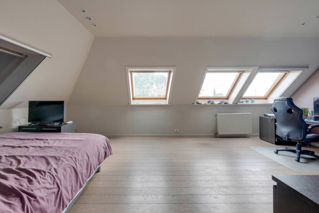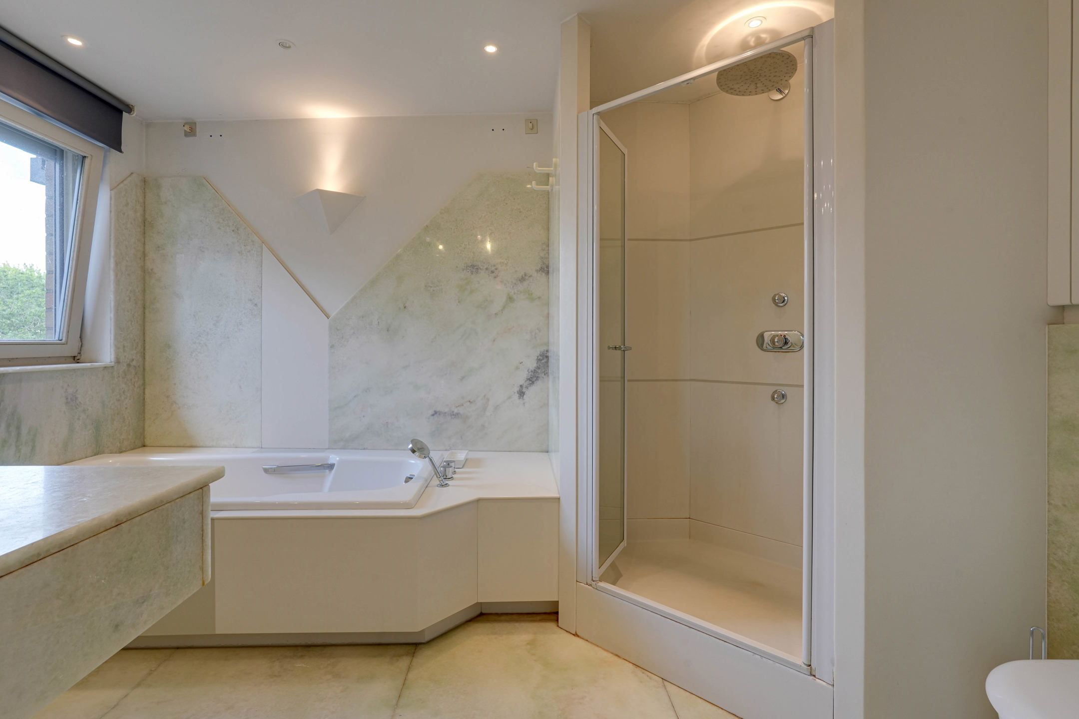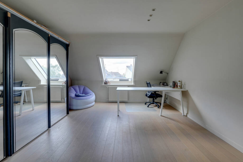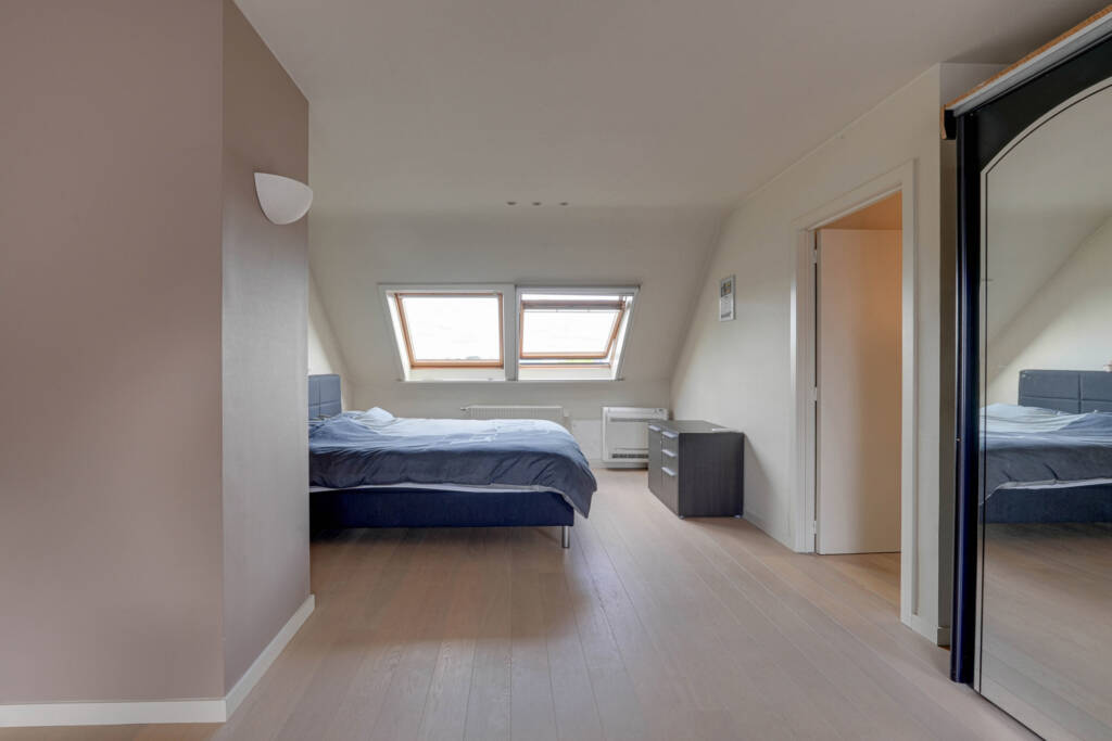 Ce penthouse riche en lumière dispose de trois chambres très spacieuses avec de grandes fenêtres Velux et du parquet moderne. Il y a deux salles de bains : une luxueuse salle de bains revêtue de marbre, équipée d’une baignoire, d’une douche et d’un double lavabo, et une deuxième salle de bains avec un double lavabo et une douche. En outre, il y a un grenier avec des escaliers escamotables, idéal comme espace de stockage supplémentaire.