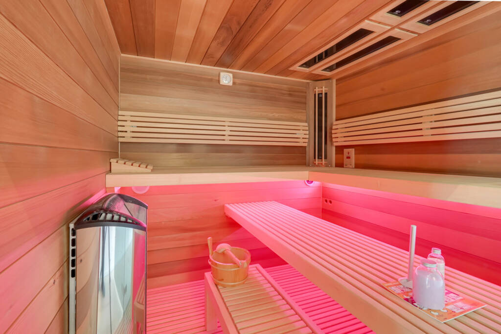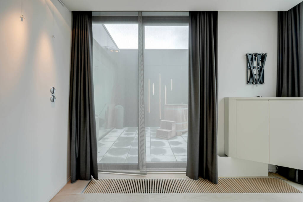 À l’intérieur, vous êtes accueilli par une cuisine ultramoderne, parfaitement intégrée aux espaces de vie et de salle à manger, tous conçus avec un souci du détail et du confort. La détente vous attend dans les deux salles de bains luxueuses, dont l’une est équipée d’un hammam et d’un sauna, tandis que la climatisation maintient une température agréable tout au long de l’année.