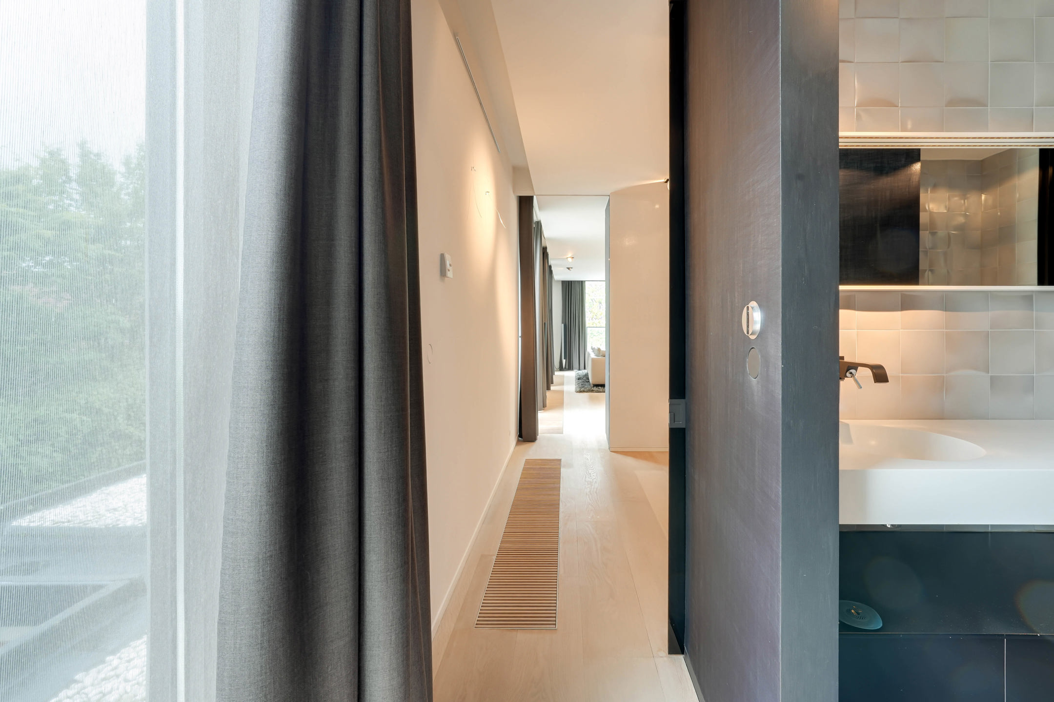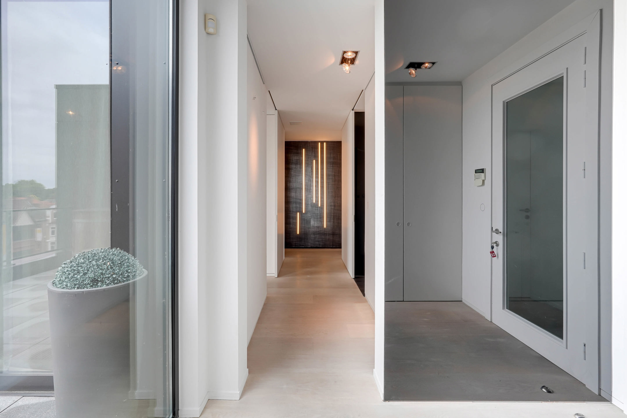 Avec sa disposition généreuse de trois chambres et deux terrasses somptueuses à l’avant et à l’arrière, vous profitez ici d’une abondance de lumière naturelle et d’une vue panoramique qui éveille les sens. L’ascenseur privé qui mène directement au penthouse garantit une intimité et une exclusivité inégalées.
