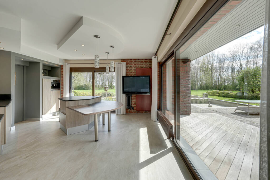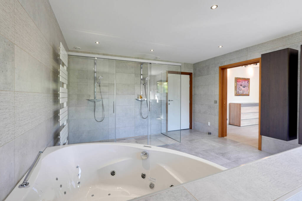 Caractéristiques : PEB B, construction de 1999, châssis en aluminium double vitrage avec persiennes motorisées, chauffage par géothermie verticale pour l’habitation et central au gaz pour la piscine (installation de chauffage récente), 27 panneaux photovoltaïques, citerne d’eau de pluie de 20.000l alimentant toilettes, machines, robinets extérieurs et la serre, système d’alarme intérieur et extérieur.