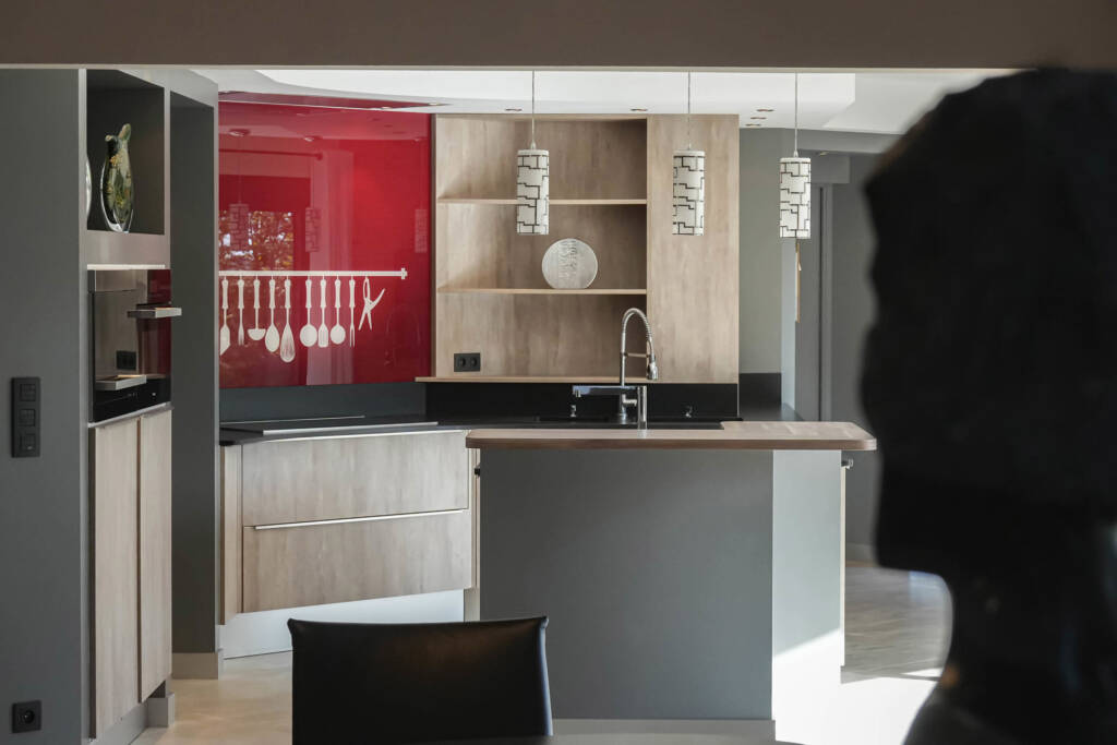 Au premier étage, un studio comprenant une grande chambre, une cuisine et une salle de bains, un espace détente en mezzanine avec une vue sur le séjour mène à deux grandes chambres et une autre salle de bains.