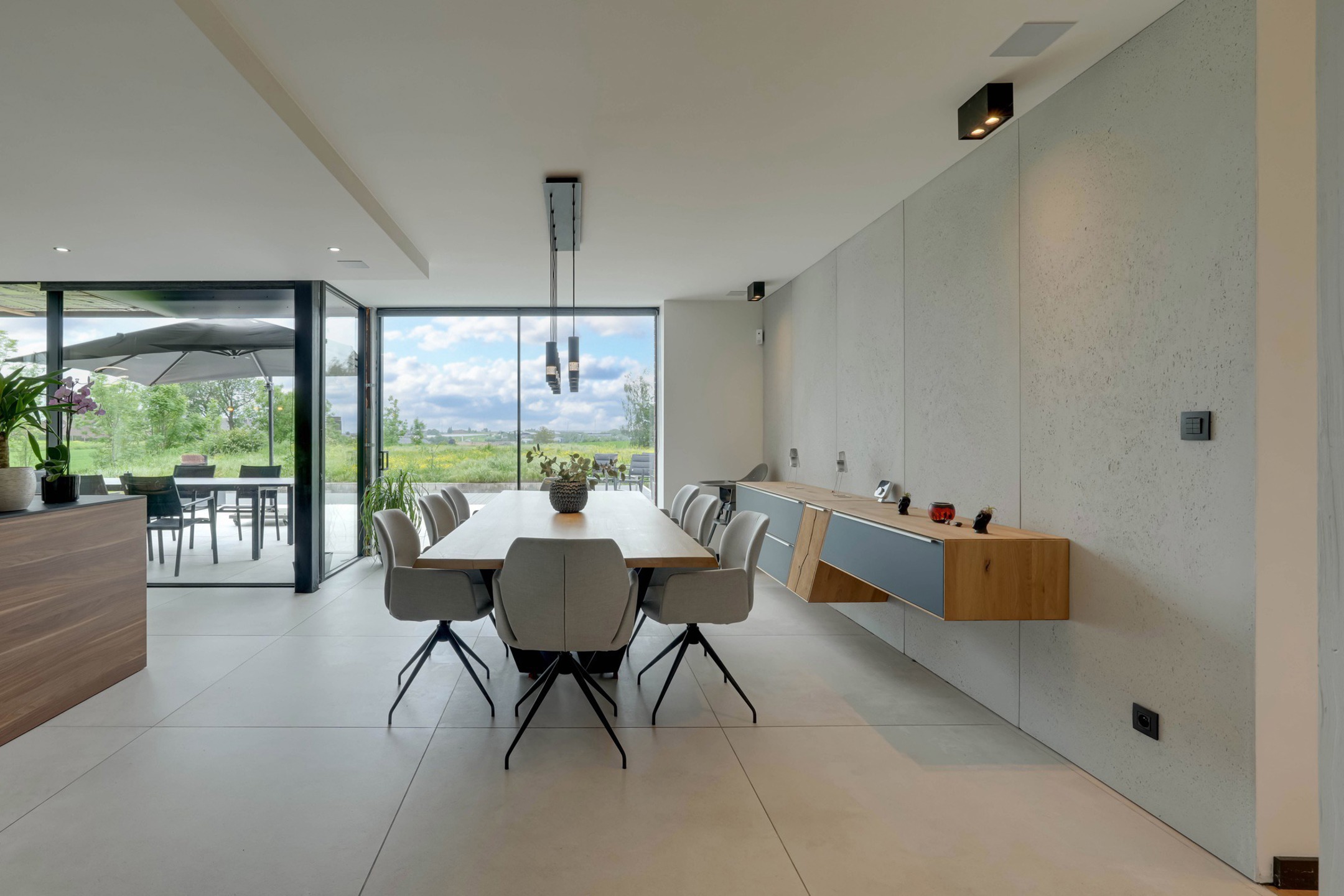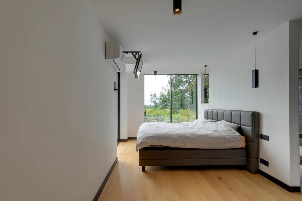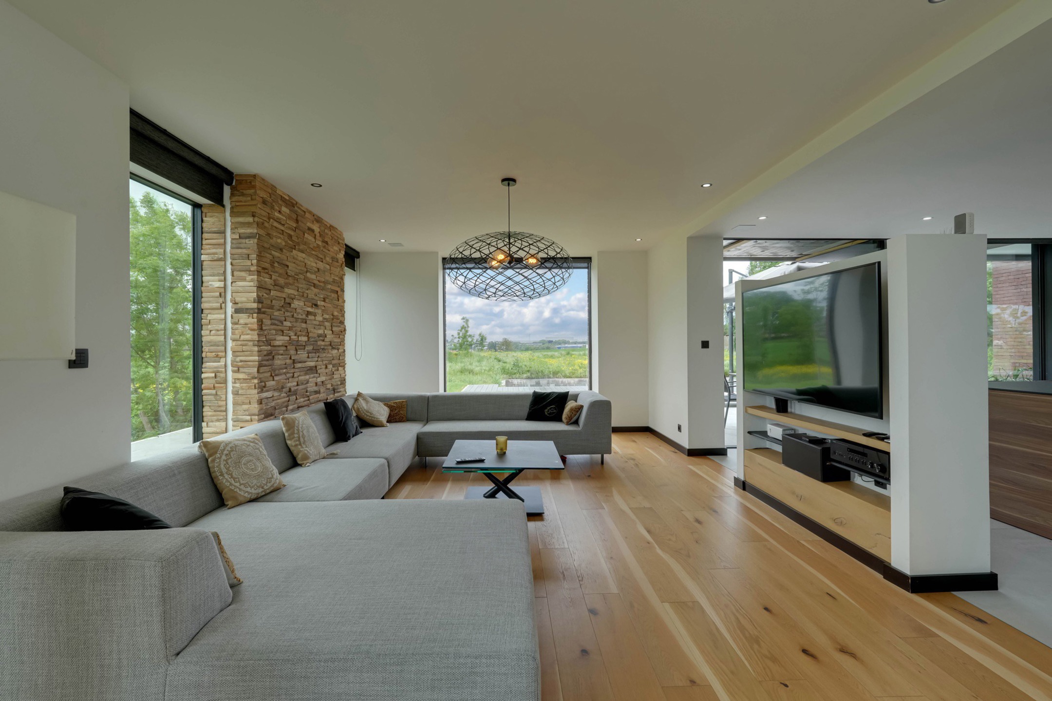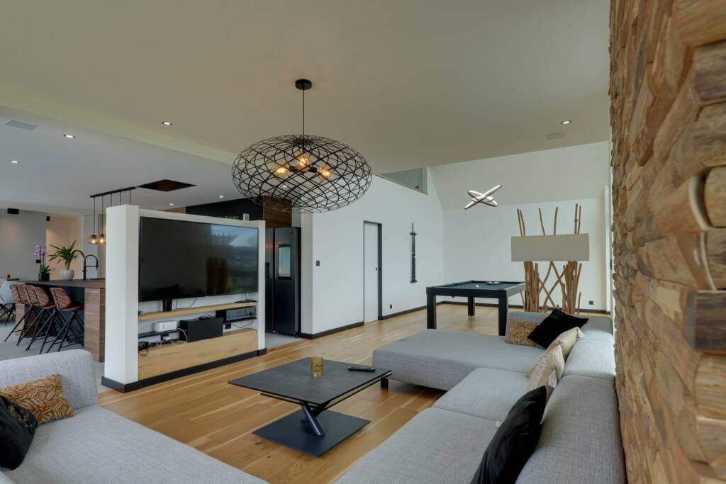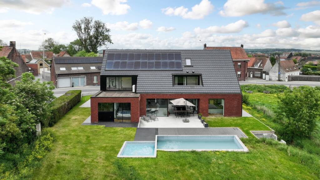 Caractéristiques : Construction de 2020, chauffage au sol par pompe à chaleur et climatisation réversible, 22 panneaux photovoltaïques, châssis en aluminium double vitrage, domotique, système d’alarme, système hifi, 2 citernes d’eau de pluie de 10.000l, adoucisseur, parquet semi massif.
