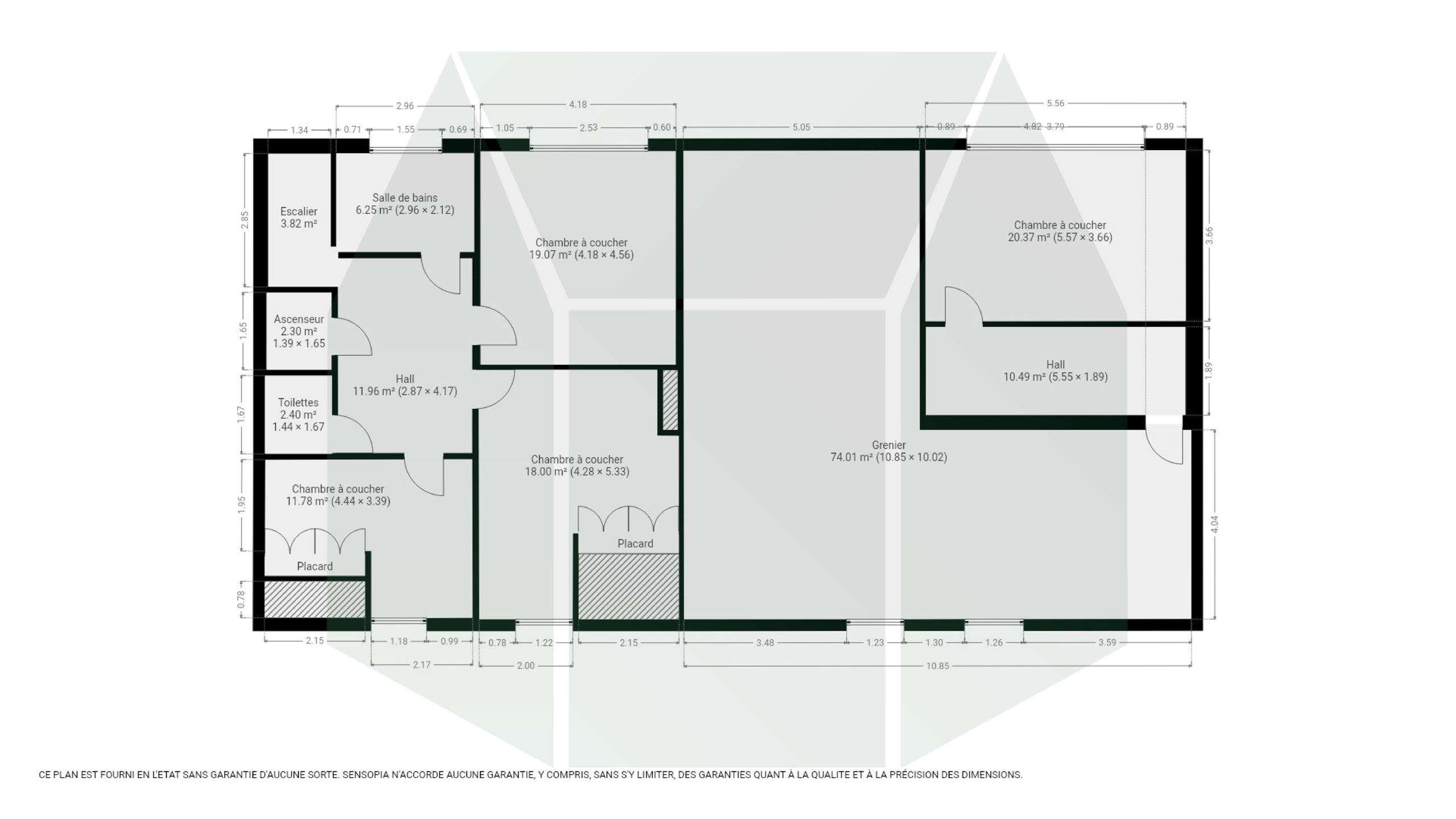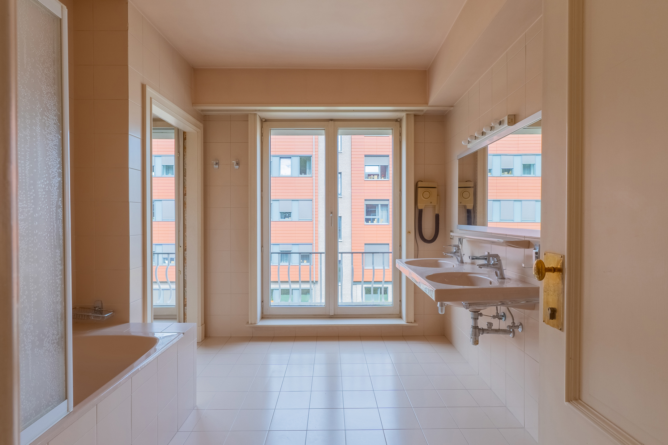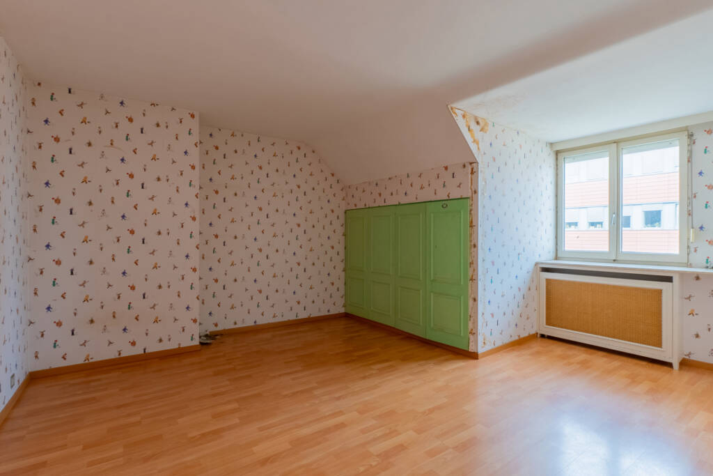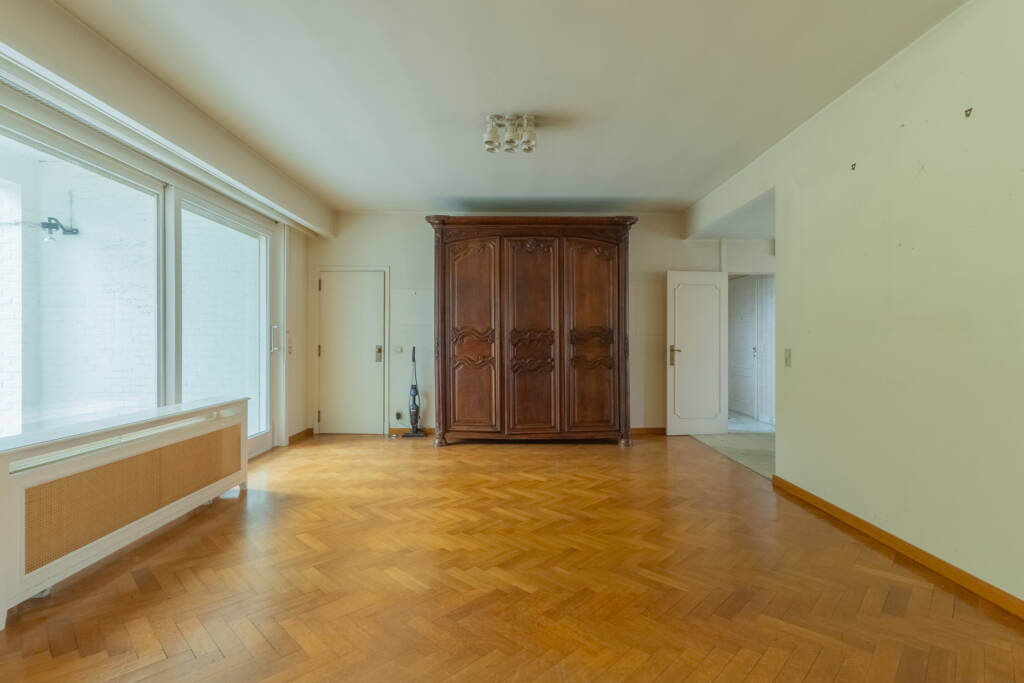 Au 2ème étage : Vaste hall menant aux 3 chambres de l’appartement de 19m², 18m² et 12m², une salle de bains composée d’une baignoire/douche, d’un meuble lavabo et d’un WC séparé. De plus, l’autre aile dessert un grand espace grenier offrant +/- 105m² habitable offrant de nombreuses possibilités d’aménagement.