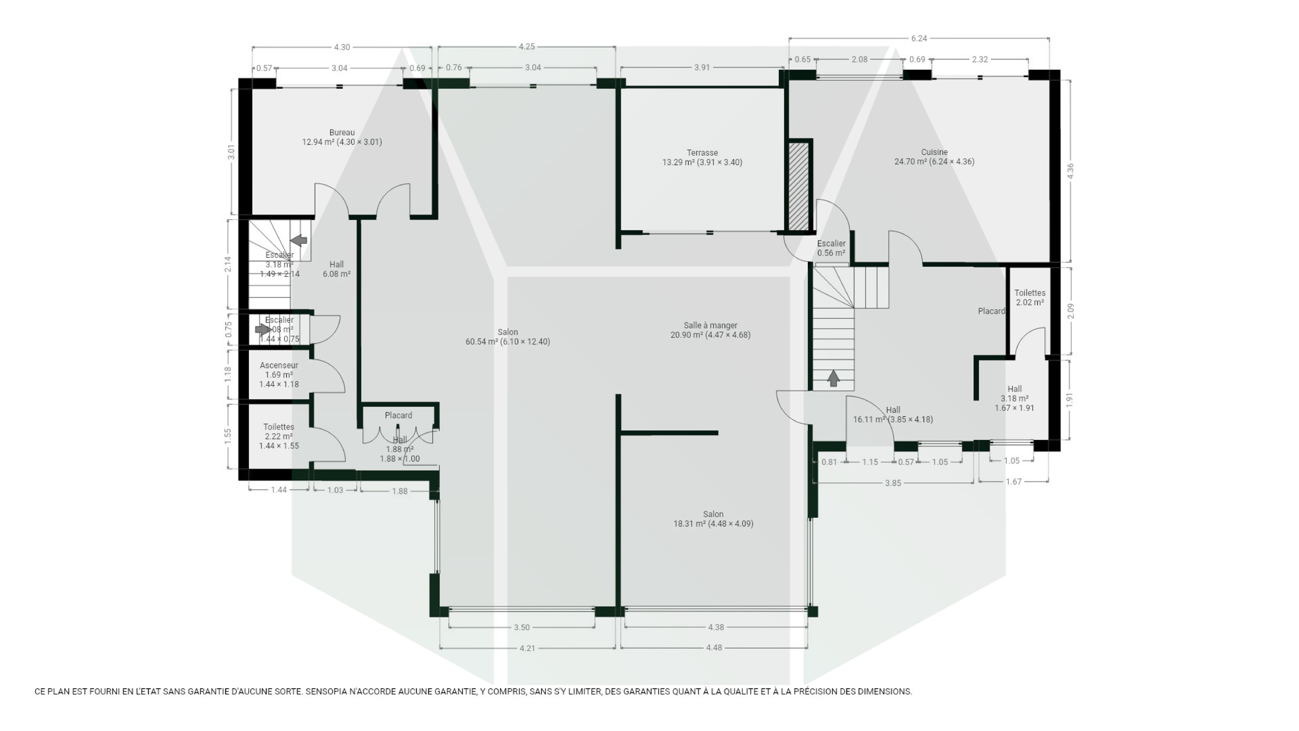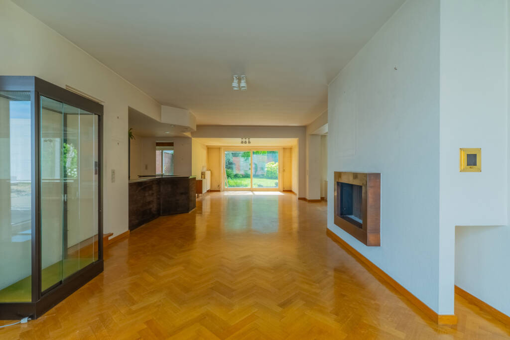 Au REZ : Un vaste hall d’entrée avec escalier apparent et espace vestiaire, un WC séparé avec lave-mains, un immense séjour développant 100m, une grande cuisine équipée attenante, un bureau offrant une agréable vue sur l’extérieur. Un second hall avec ascenseur menant à tous les étages.