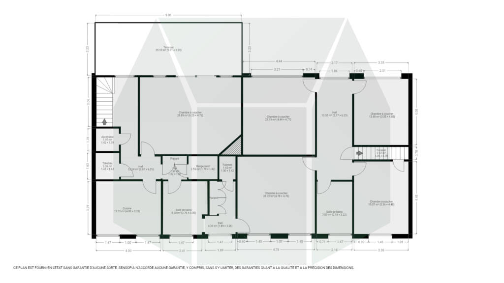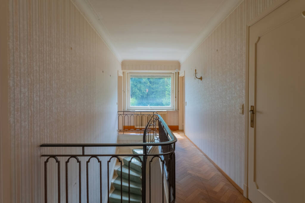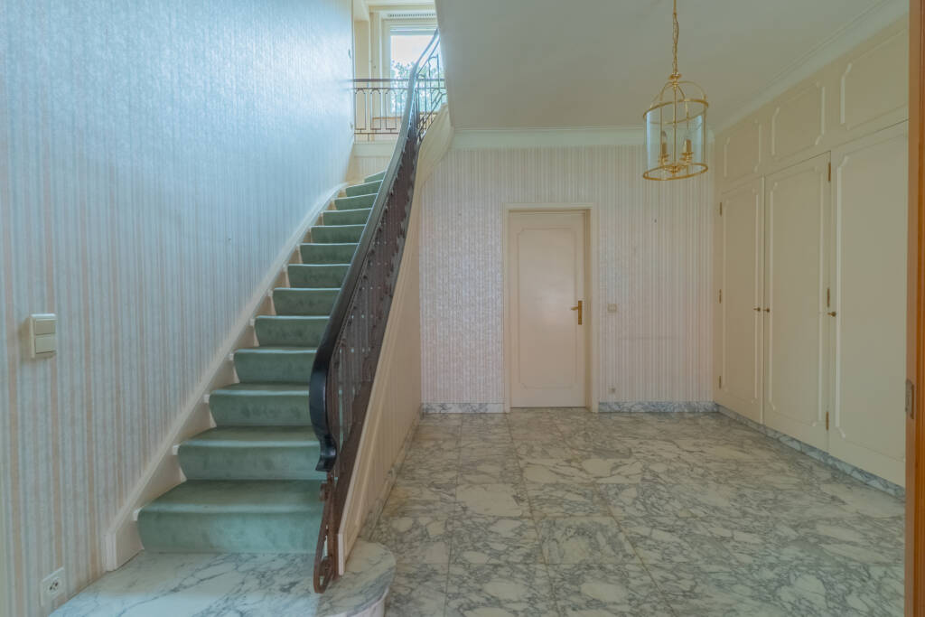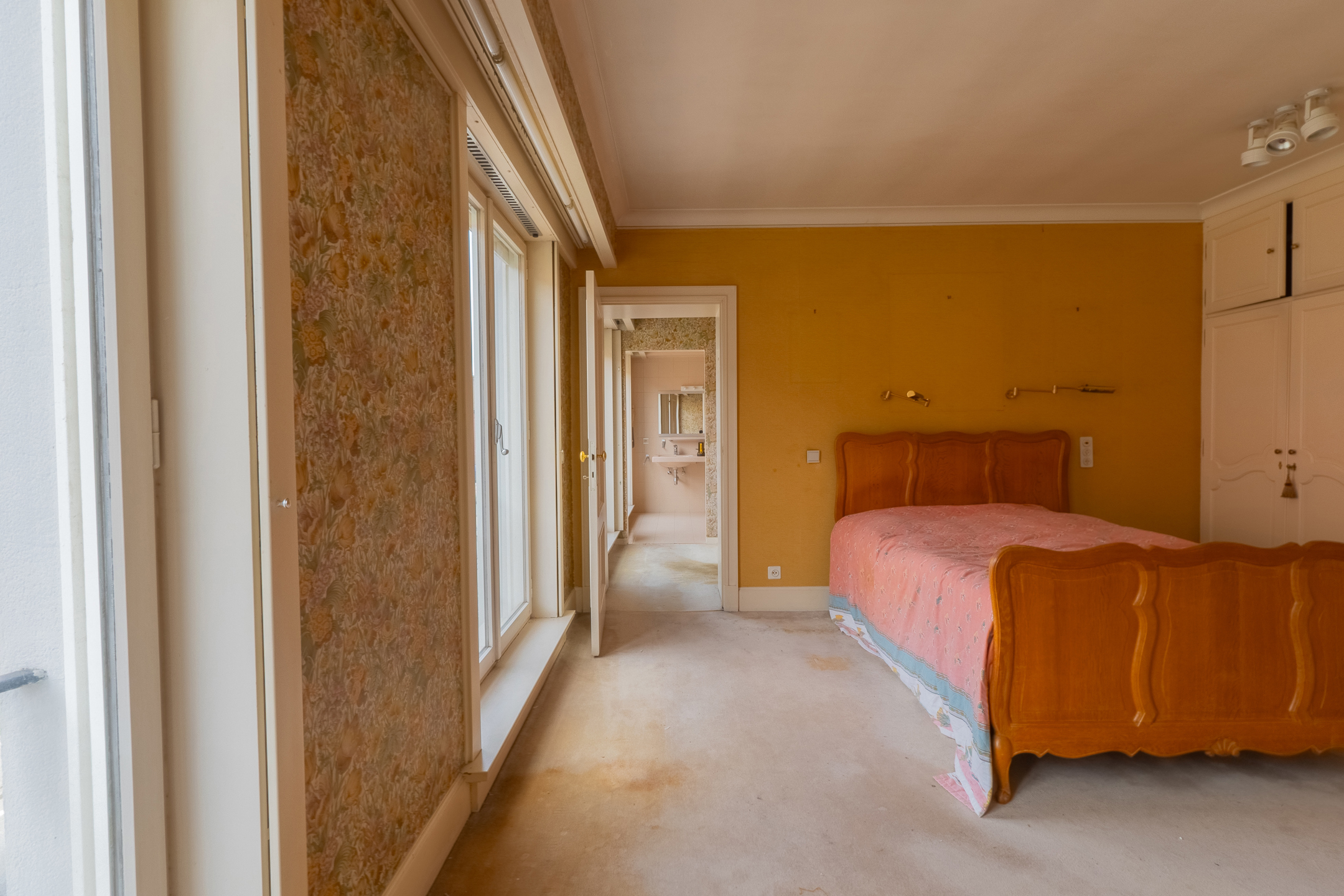 Au 1er étage : Premier hall de nuit desservant 4 chambres à coucher de 23m², 21m², 15m² et 14m² (dont une suite parentale) avec une première salle de bains composée d’une baignoire/douche, d’un meuble lavabo double vasque, et un dressing. Une seconde salle de bains composée d’une baignoire, d’une douche, d’un meuble lavabo double vasque et d’un WC. Le second hall dessert l’appartement avec une cuisine équipée ainsi qu’un lumineux séjour de +/- 30m² avec l’avantage d’avoir une grande terrasse surplombant le jardin.