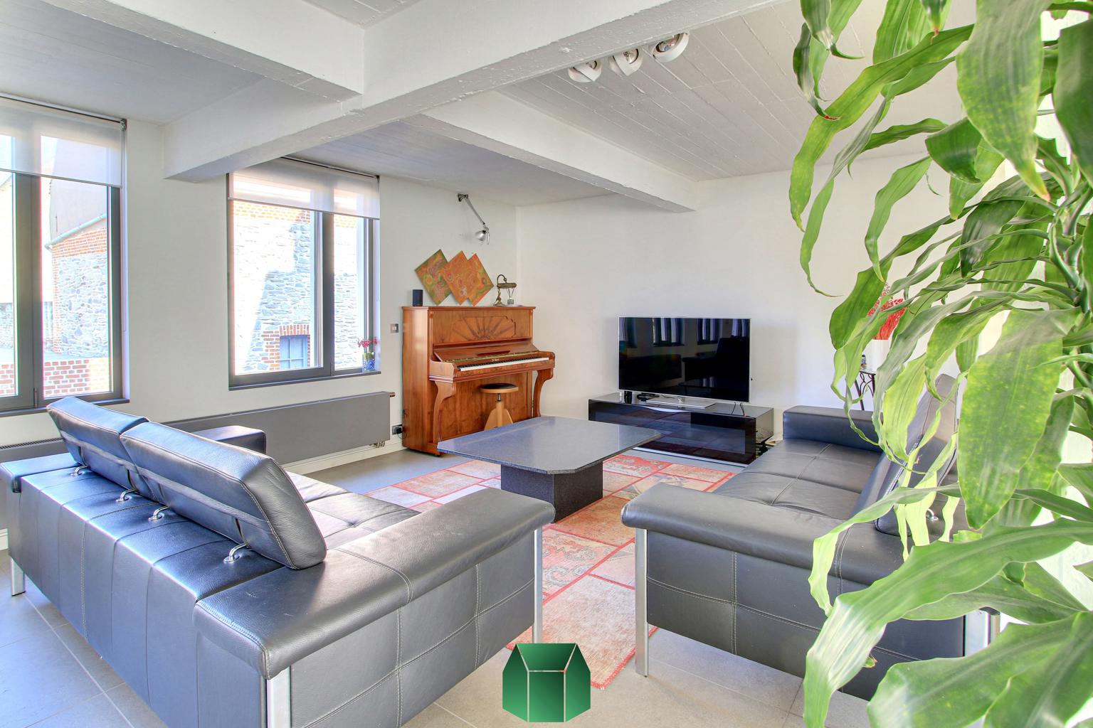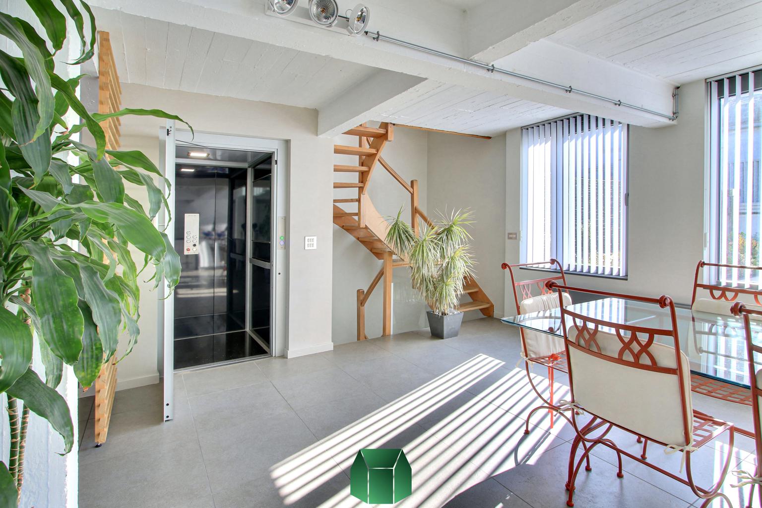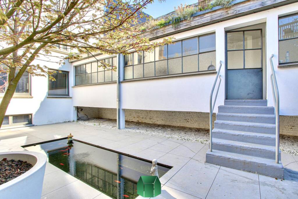 Matériaux de qualité, modernité et luminosité sont au rendez-vous. Ce produit allie tous les aspects positifs d’une situation en centre-ville tout en éloignant les inconvénients traditionnels : on retrouve en effet ici le calme, un spacieux garage avec porte sectionnelle motorisée pouvant accueillir deux voitures et de grandes terrasses pour profiter de l’extérieur. Un grand espace linéaire vitré auquel on accède via la cour peut servir d’atelier (avec poêle à bois). Chauffage central au gaz (chaudière Vaillant), alarme, caméras de surveillance.