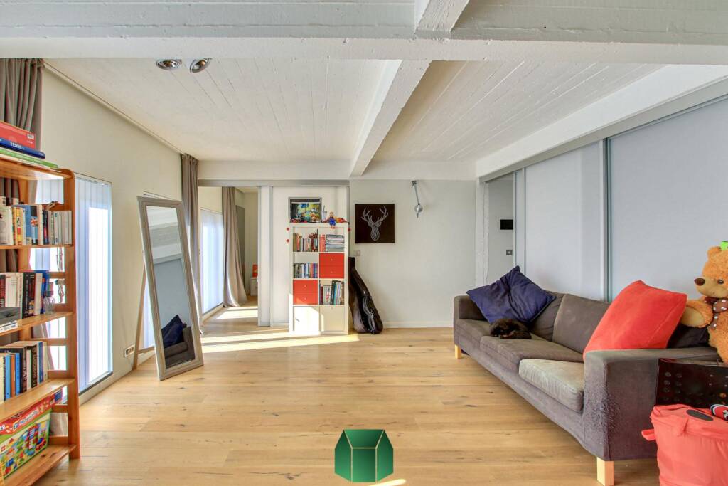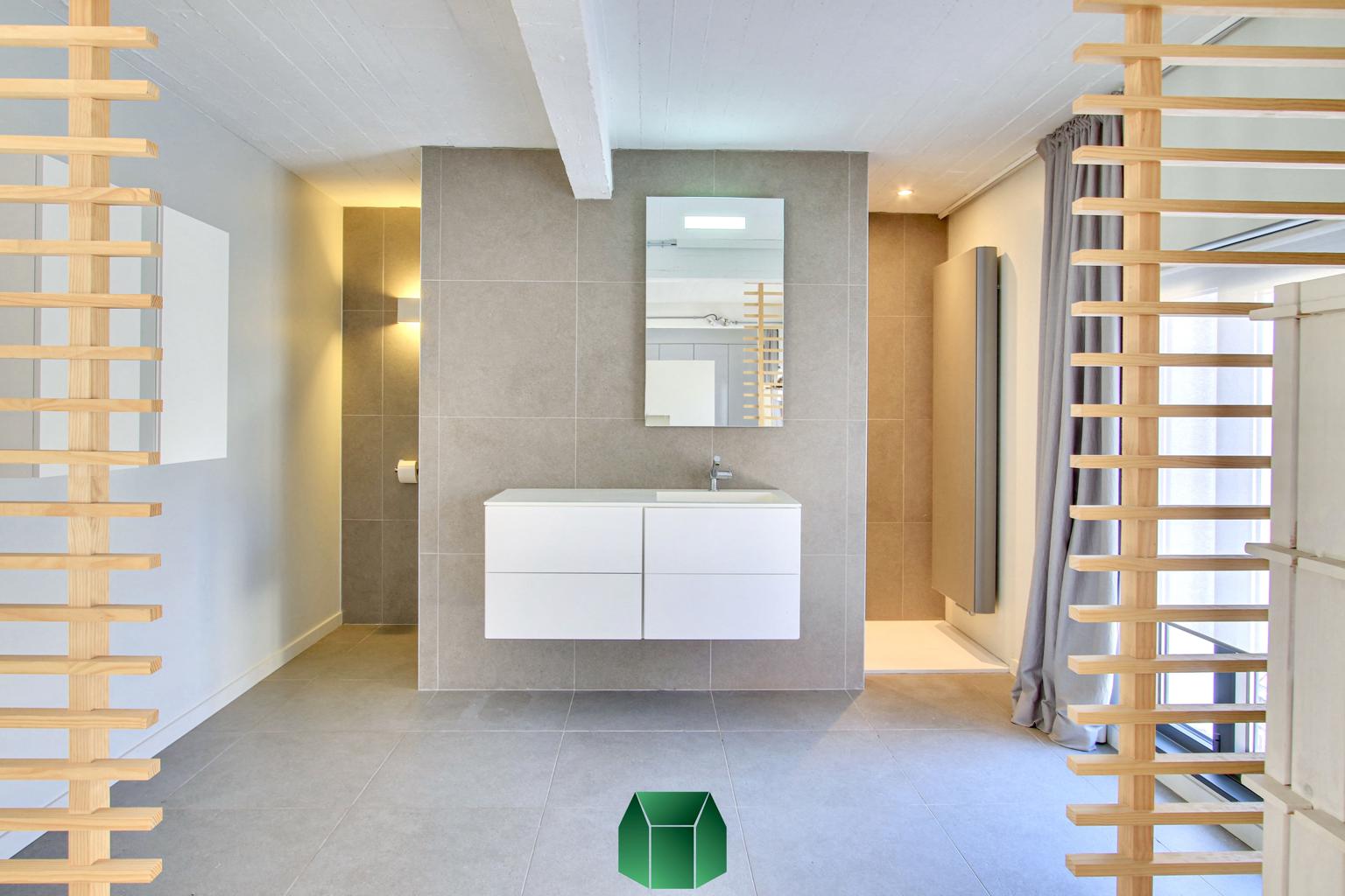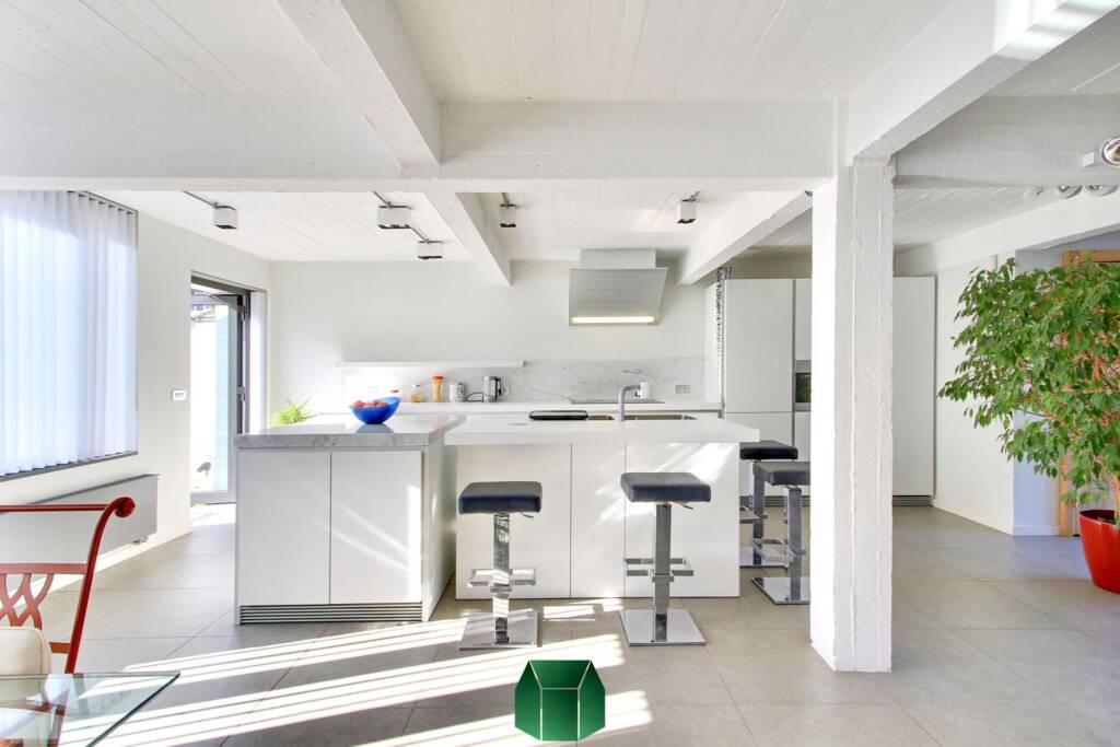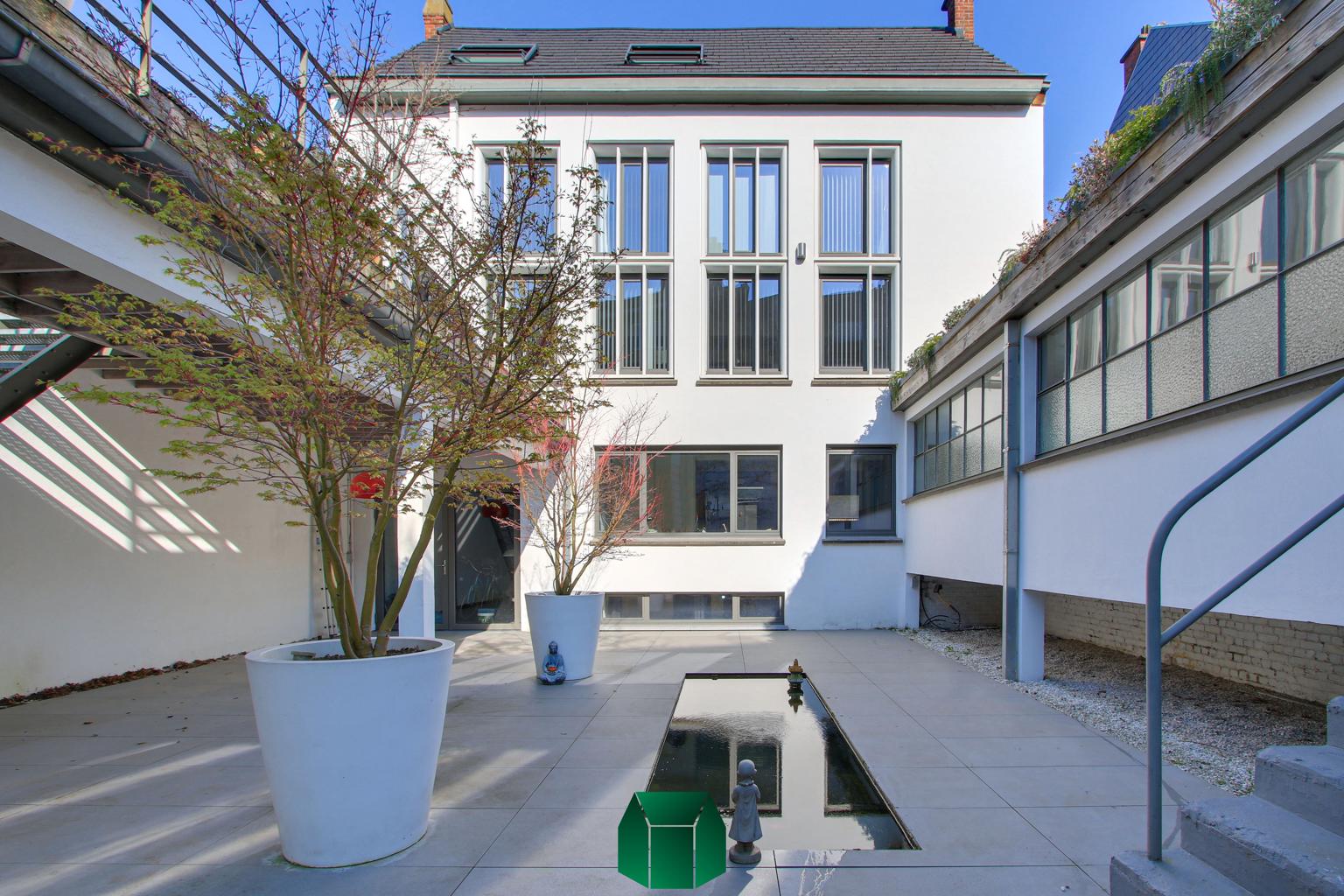 Matériaux de qualité, modernité et luminosité sont au rendez-vous. Ce produit allie tous les aspects positifs d’une situation en centre-ville tout en éloignant les inconvénients traditionnels : on retrouve en effet ici le calme, un spacieux garage avec porte sectionnelle motorisée pouvant accueillir deux voitures et de grandes terrasses pour profiter de l’extérieur. Un grand espace linéaire vitré auquel on accède via la cour peut servir d’atelier (avec poêle à bois). Chauffage central au gaz (chaudière Vaillant), alarme, caméras de surveillance.