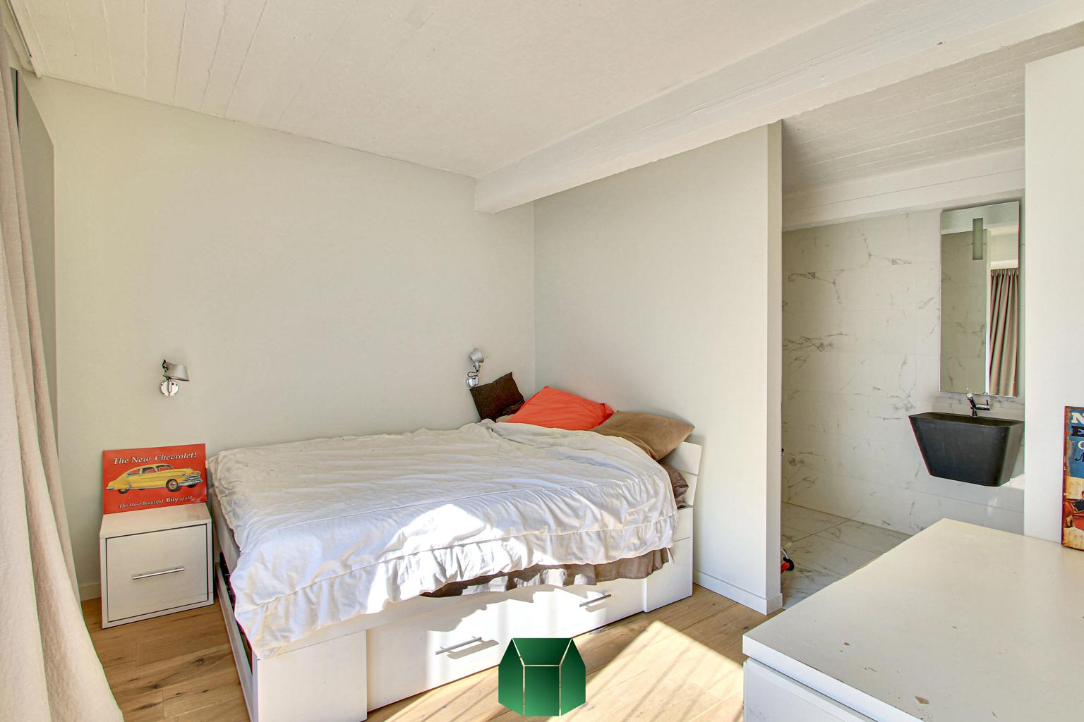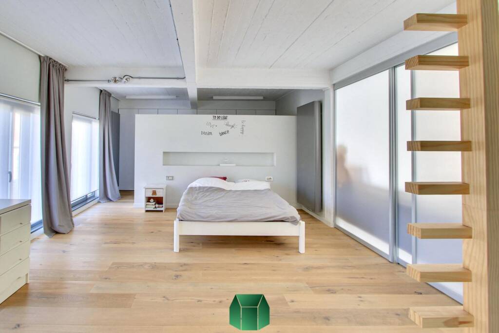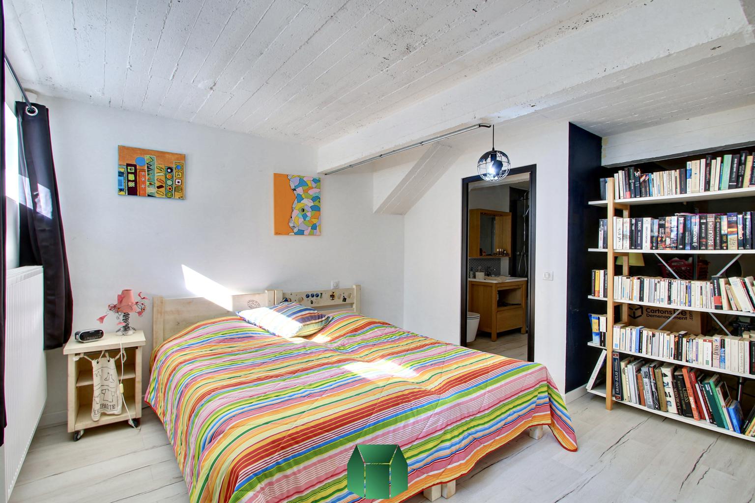 Au niveau de l’entresol on retrouve l’équivalent d’un studio comprenant une chambre, un coin salon, une salle de bain et une buanderie.