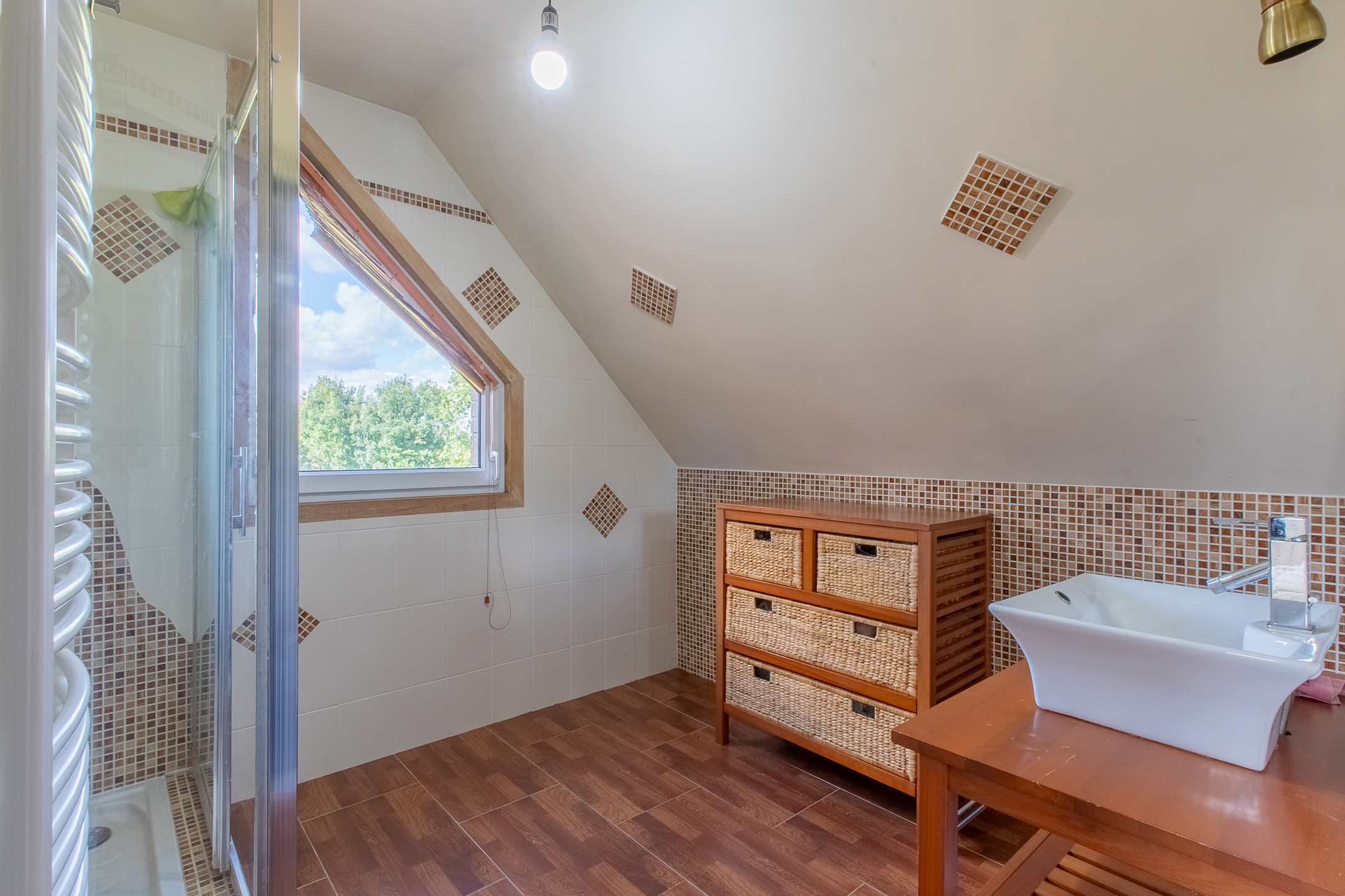 Le deuxième étage vous réserve un grenier de rangement spacieux, offrant encore davantage de possibilités d’aménagement.