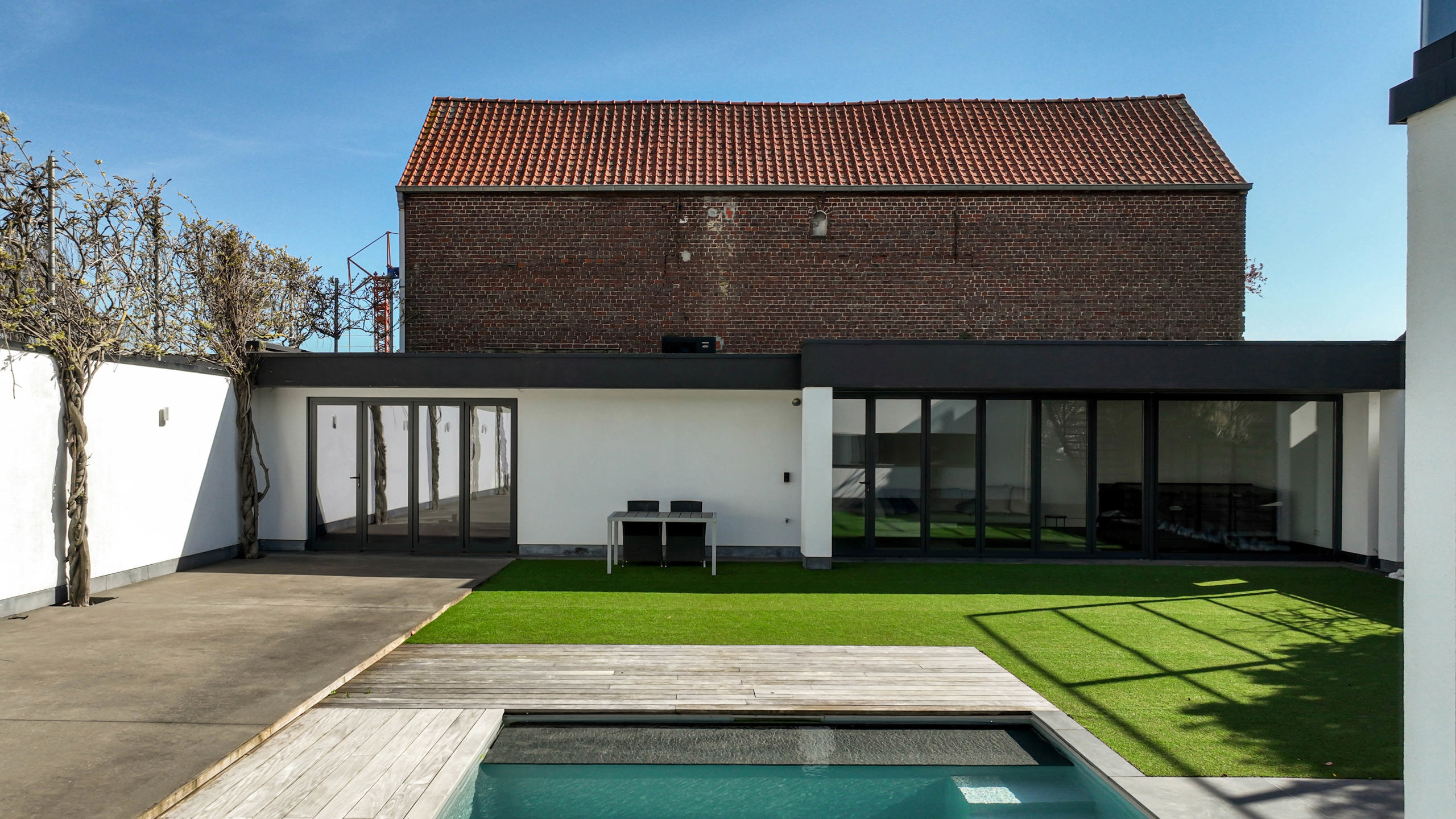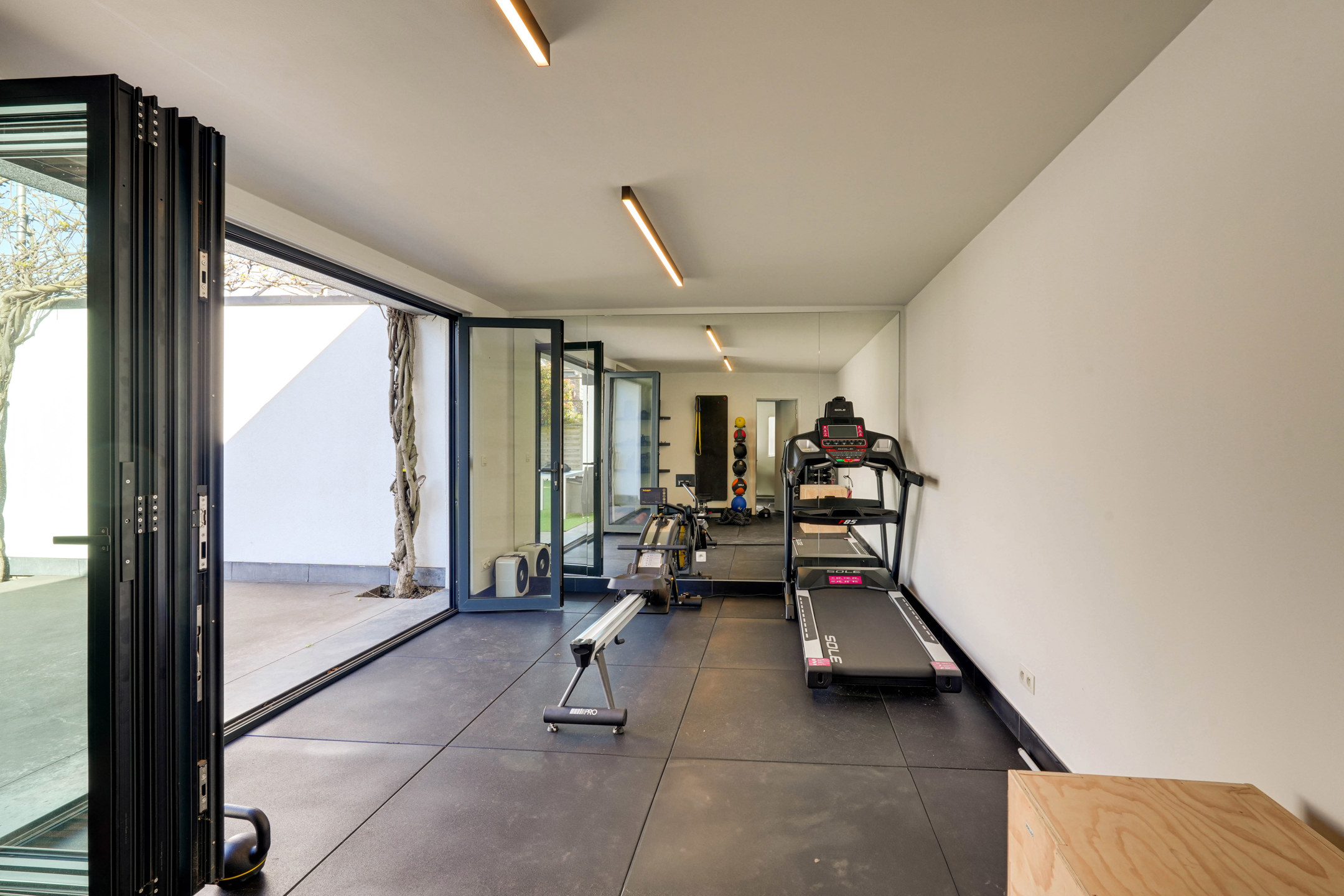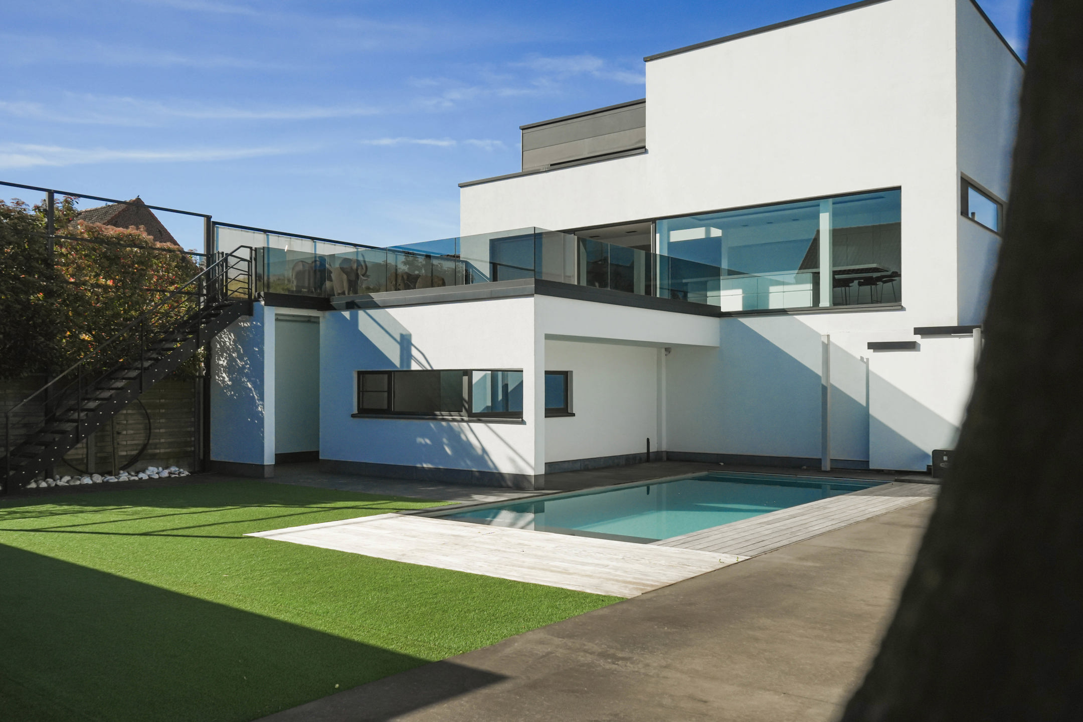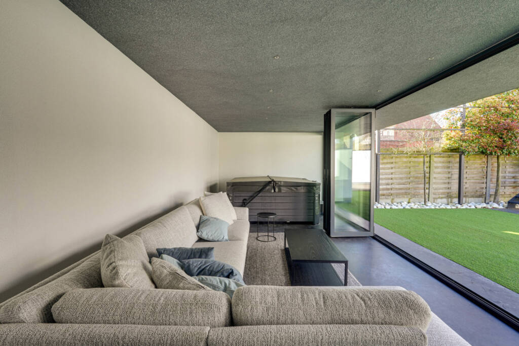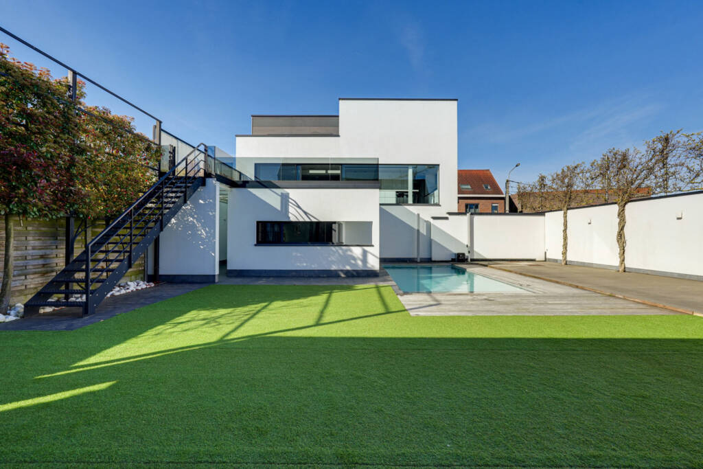 Daarbij maakt een bijgebouw/poolhouse de tuin compleet. Een deel ervan dient als fitnessruimte, met accordeon ramen, terwijl het andere deel een comfortabele zithoek huisvest, compleet met jacuzzi.Overal is er vloerverwarming voorzien, airco in de slaapkamers, veel ingebouwde kasten, 2 x 15.000 L regenwater + boorput, …