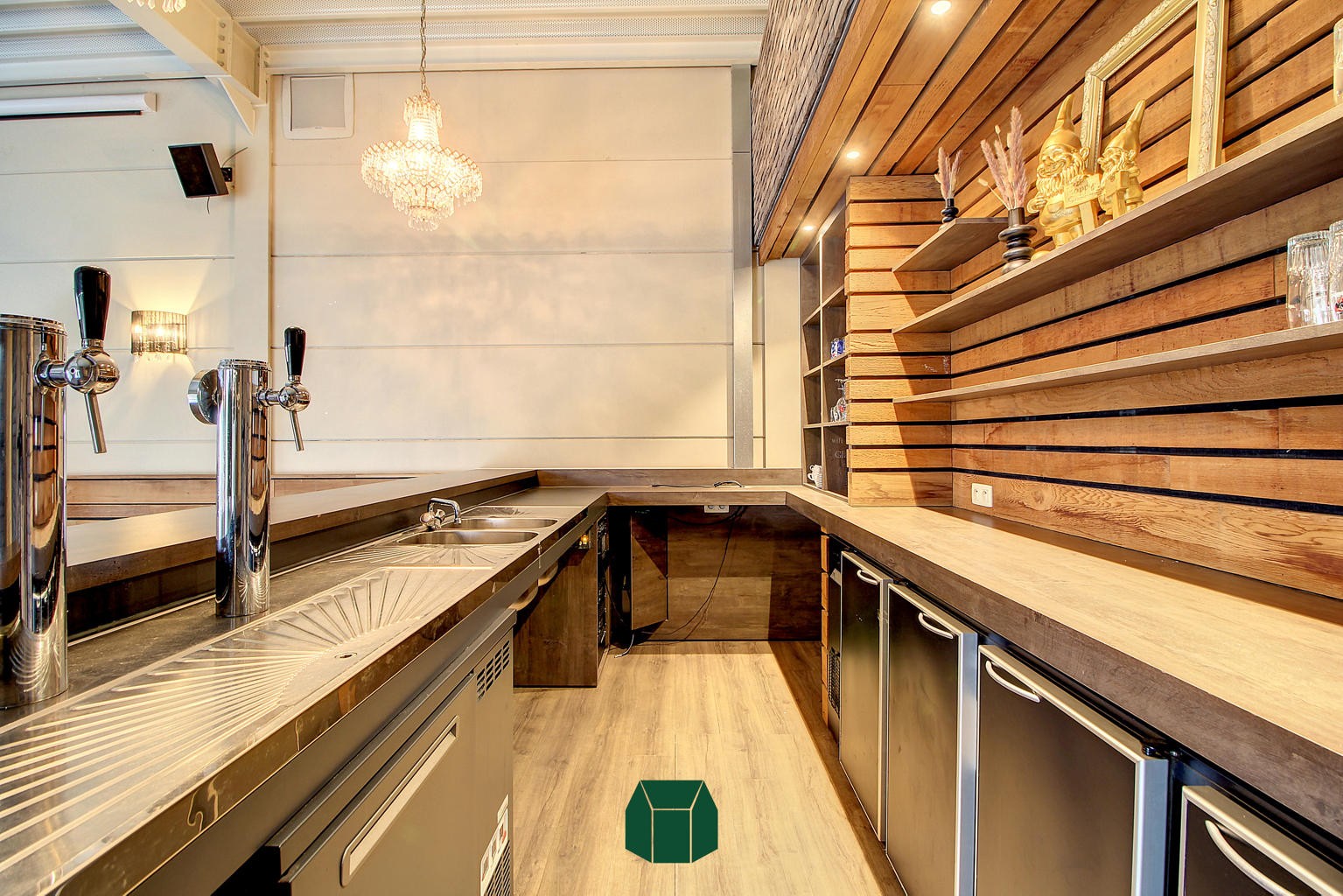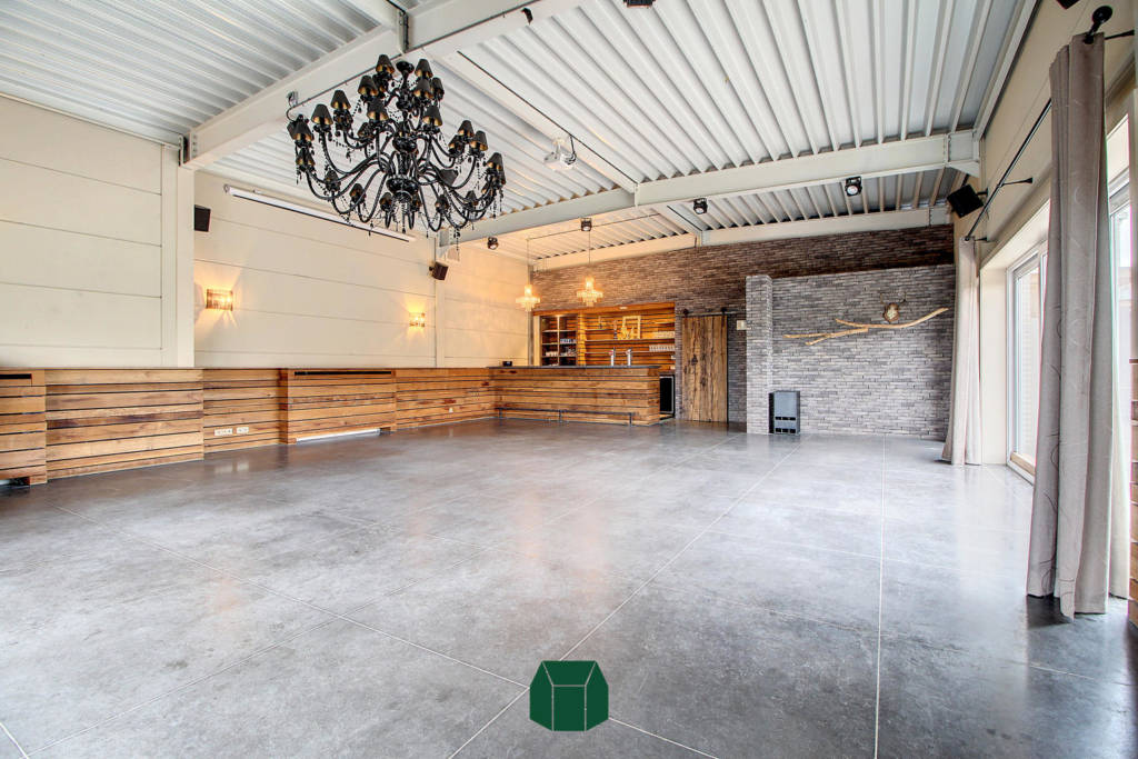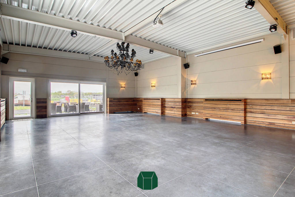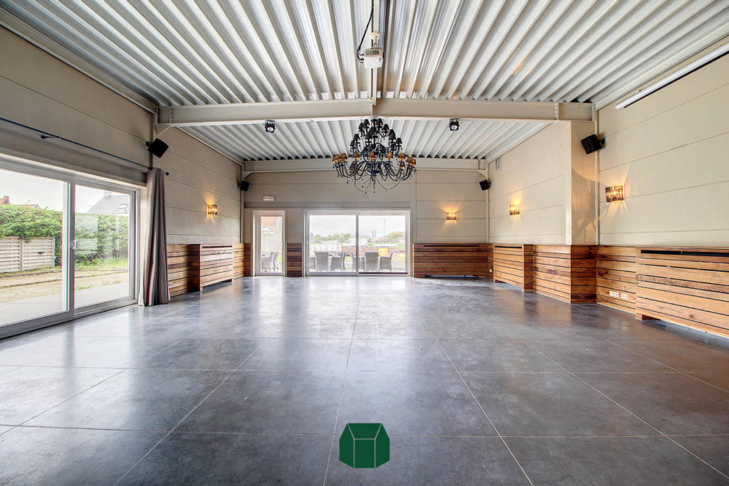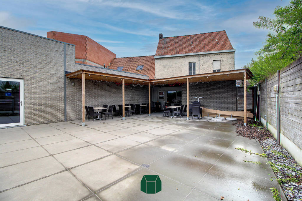 Dankzij het nieuwbouwproject ernaast waar tal van appartementen komen, is vast cliënteel al een mooi genomen zekerheid!De indeling bestaat uit een grote open ruimte met zeer veel natuurlijk licht dankzij de grote raampartijen. In deze ruimte is er een volledig geïnstalleerde toog te vinden met tapinstallatie en meerdere barkoelkasten. Deze ruimte staat in verbinding met de (rolstoeltoegankelijke) toiletten. Achter deze commerciële ruimte vinden we een volledig geïnstalleerde keuken met een ruime ingebouwde koelcel.