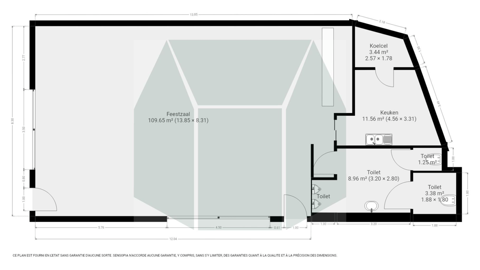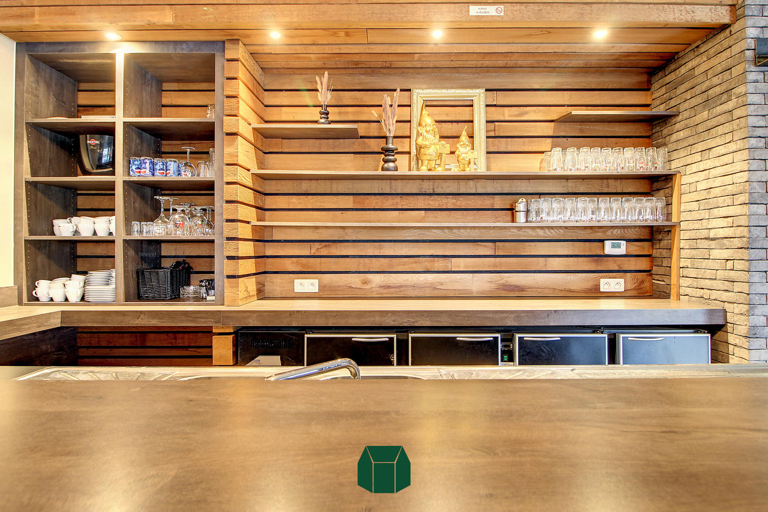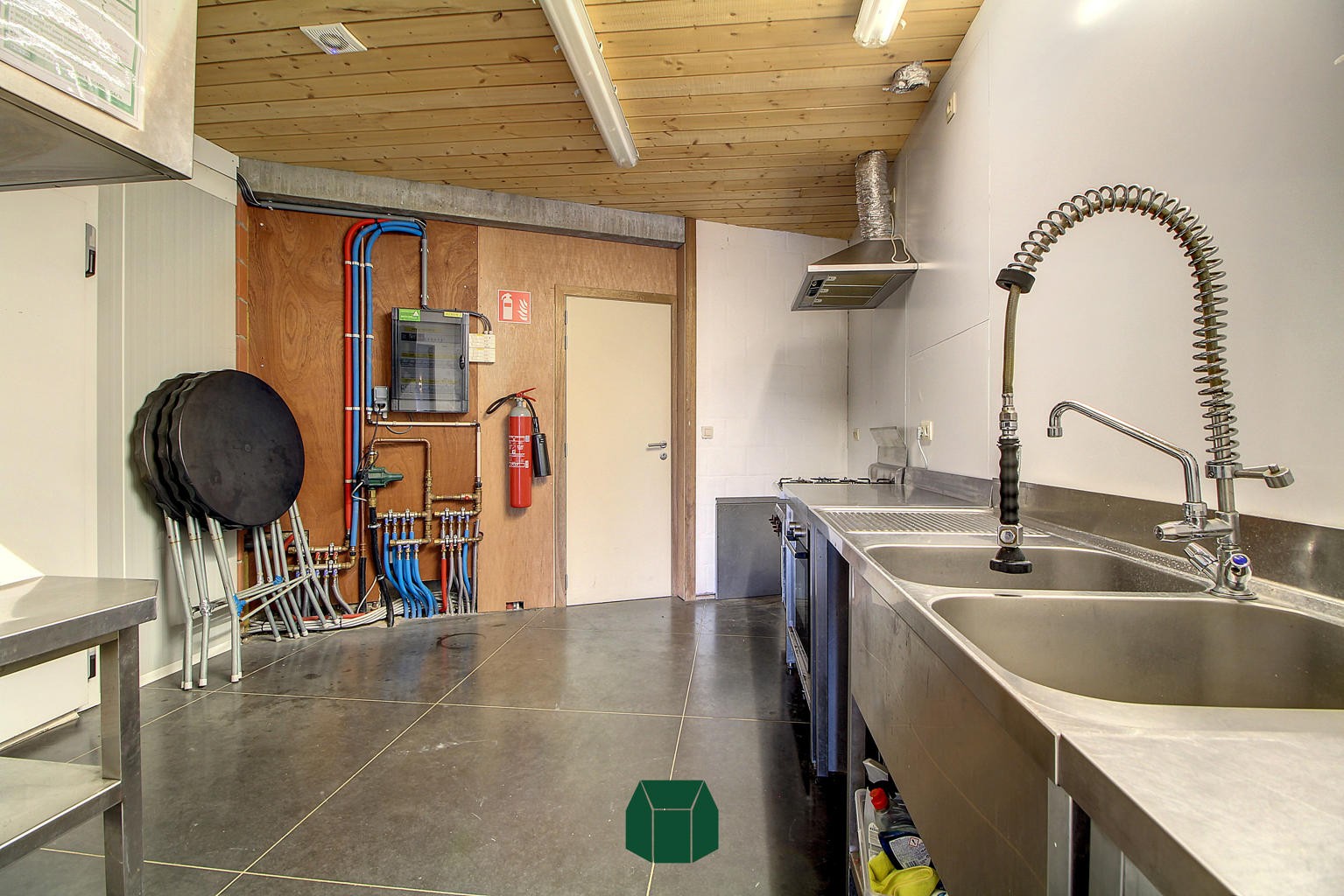 Dankzij het nieuwbouwproject ernaast waar tal van appartementen komen, is vast cliënteel al een mooi genomen zekerheid!De indeling bestaat uit een grote open ruimte met zeer veel natuurlijk licht dankzij de grote raampartijen. In deze ruimte is er een volledig geïnstalleerde toog te vinden met tapinstallatie en meerdere barkoelkasten. Deze ruimte staat in verbinding met de (rolstoeltoegankelijke) toiletten. Achter deze commerciële ruimte vinden we een volledig geïnstalleerde keuken met een ruime ingebouwde koelcel.