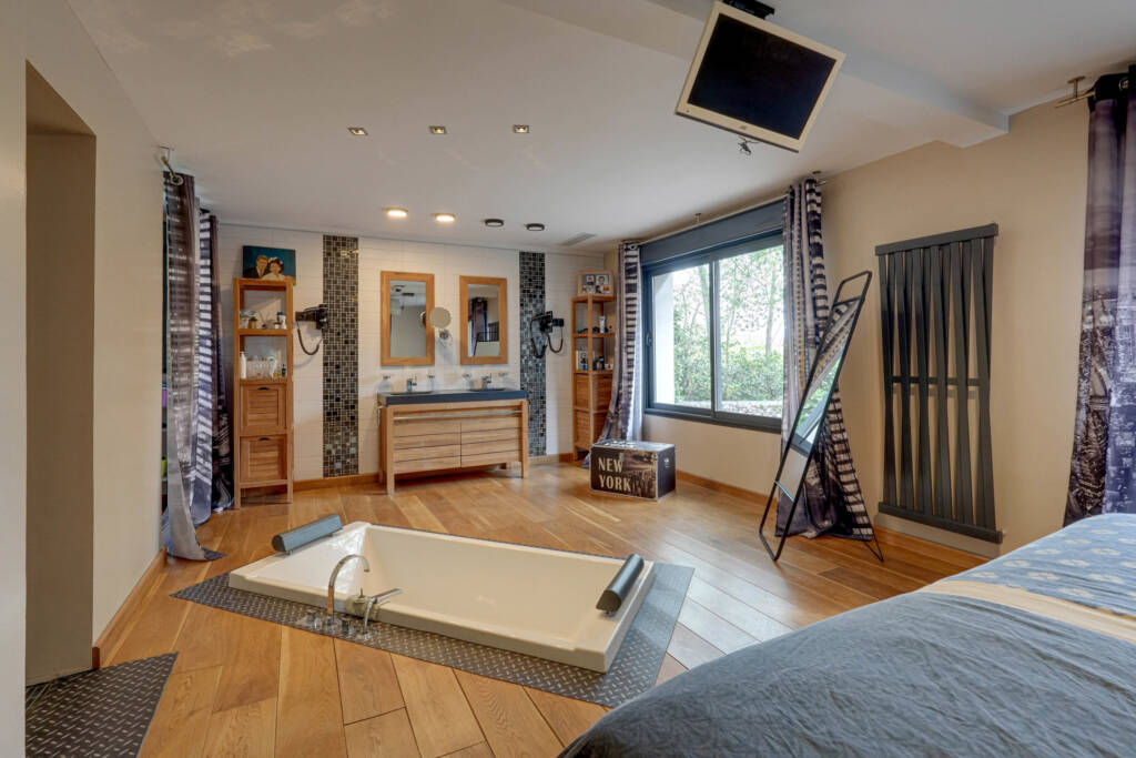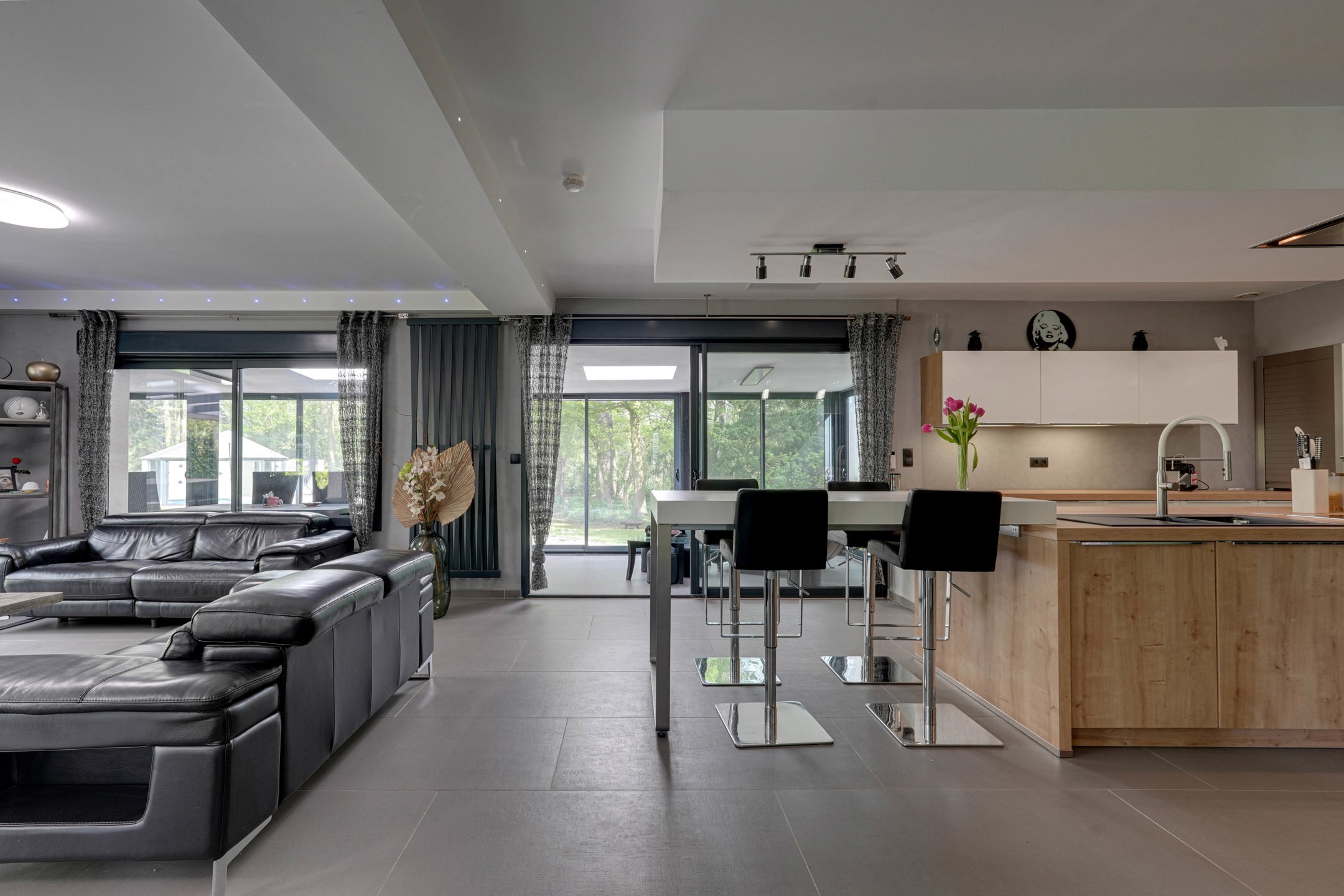 Prachtige bungalow midden in het groenDeze gelijkvloerse woning heeft een grote woonkamer van 74 m² met open keuken en een veranda van 30 m²! Het beschikt ook over een slaapkamer, een master suite met bad, dubbele wastafel,...