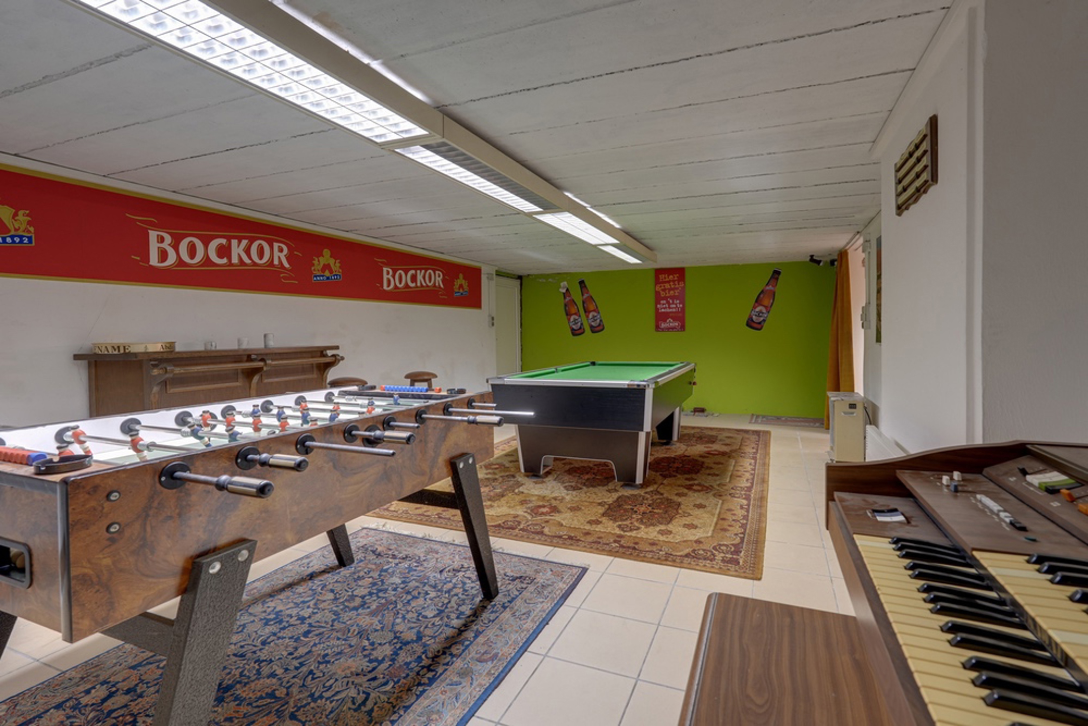 De twee garages zijn toegankelijk via een een elektrische poort.De kelderverdieping biedt een veelvoud aan mogelijkheden, waaronder een ruim atelier en een ontspanningsruimte. Een mancave en een wijnkelder zijn hier ook aanwezig.