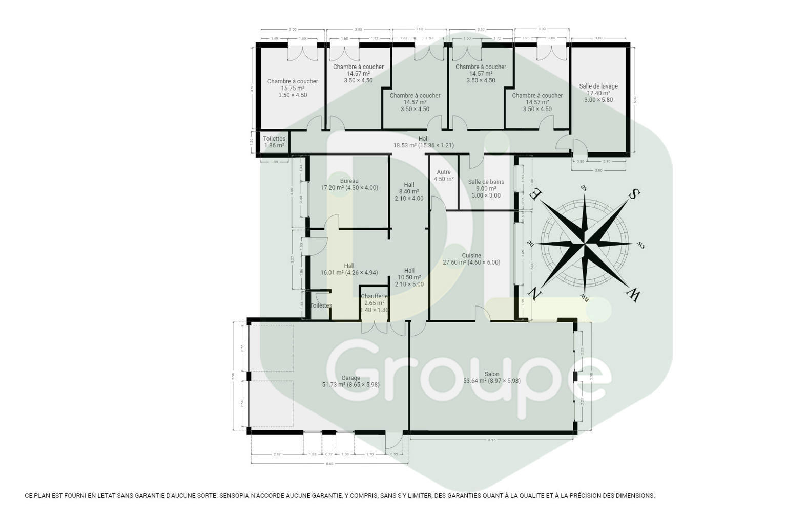 Au REZ : Spacieux hall d’entrée, un WC séparé, un magnifique séjour très lumineux de 54m² (salon et salle à manger), une cuisine attenante semi-équipée (double évier, hotte, nombreux rangements intégrés), une salle de bains non-équipée, un hall de nuit desservant 5 grandes chambres à coucher de 16m² et 15m² avec des dressings sur-mesure, un WC séparé avec lave-mains, une buanderie, un grand garage pouvant accueillir facilement 2 voitures avec rangement, un coin chaufferie.