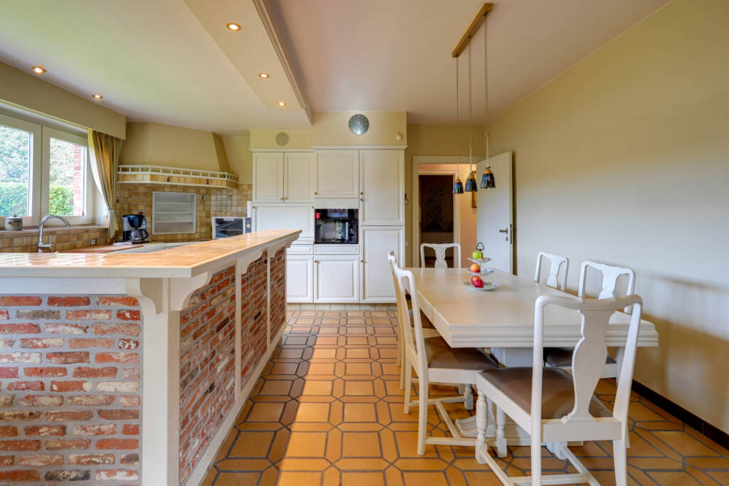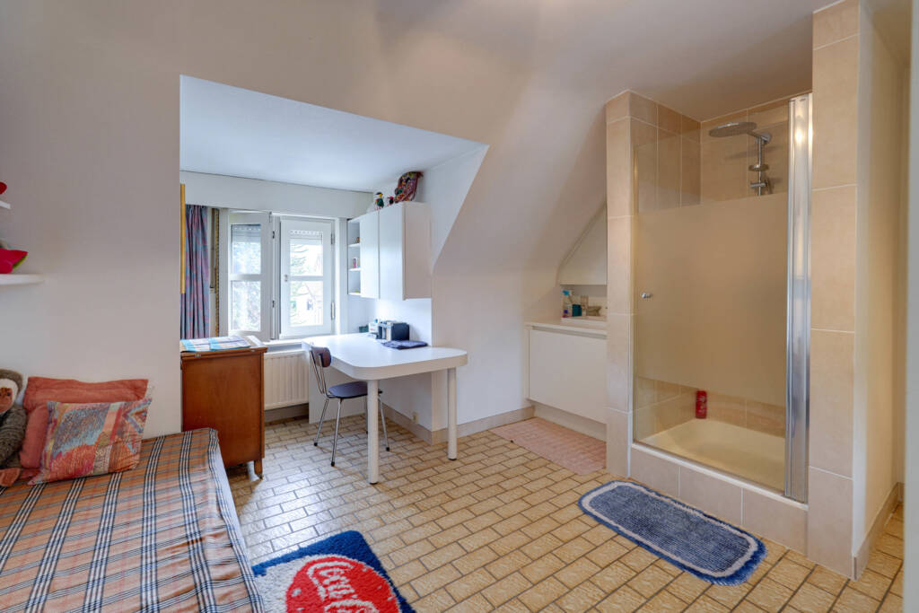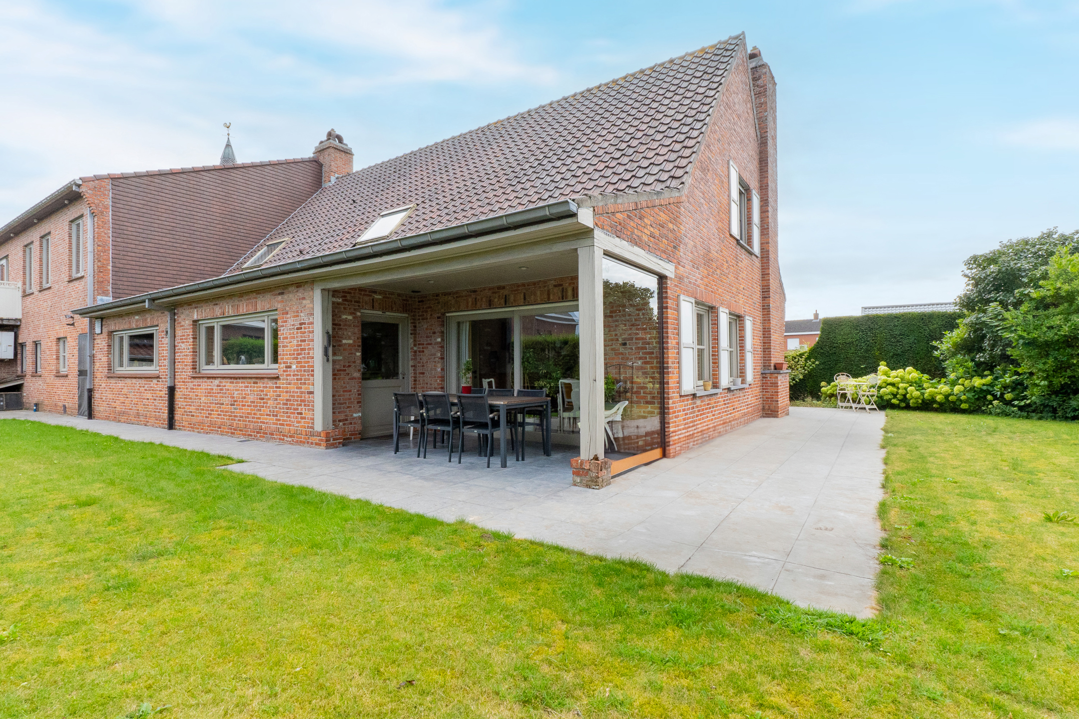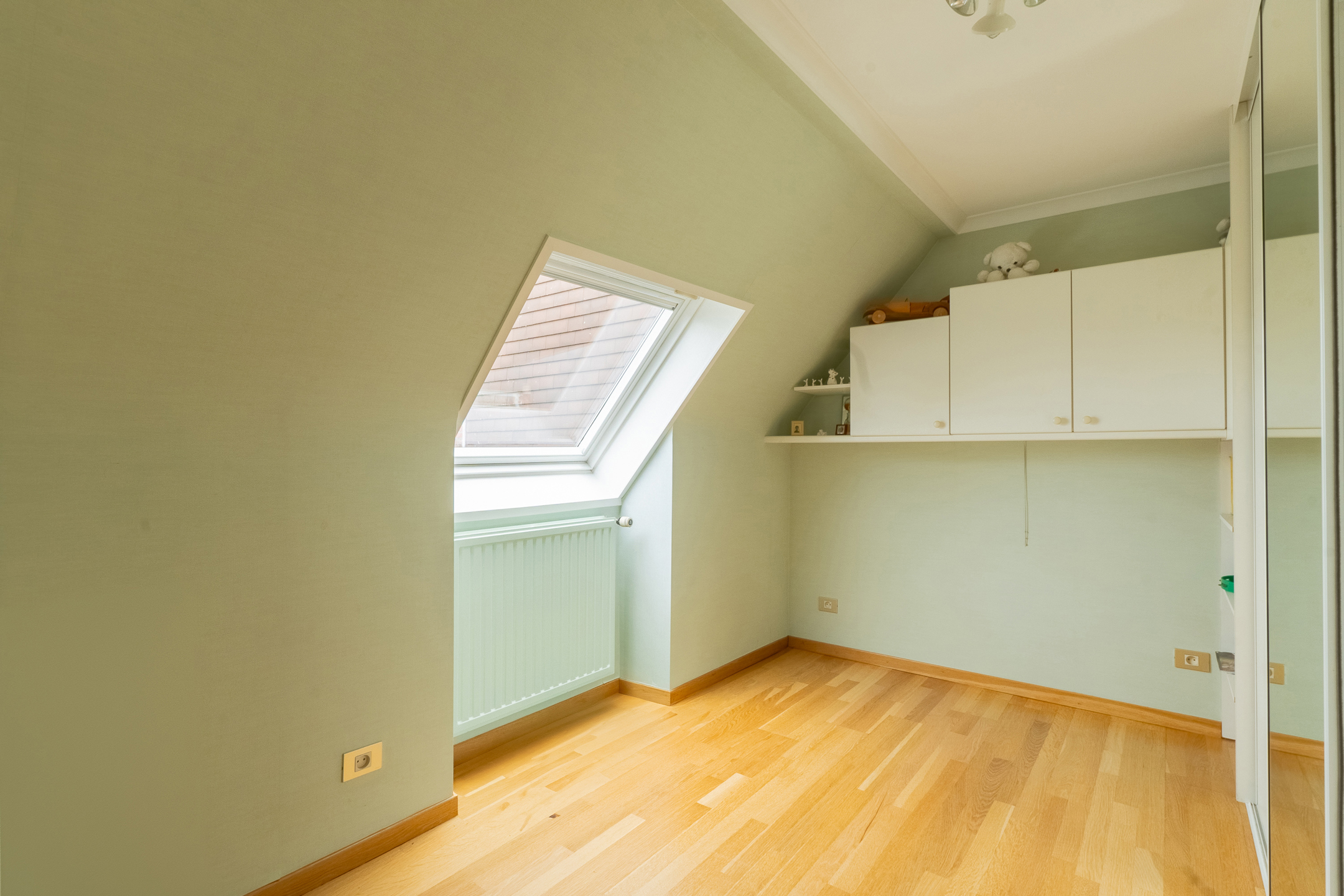 Op de 1ste verdieping siert een overloop met toilet en 3 prachtige slpk’s, vergezeld van een douchekamer.Achteraan wacht een aangelegde privétuin op u met een deels overdekt terras waar u in alle rust kunt vertoeven en genieten van de groene oase.