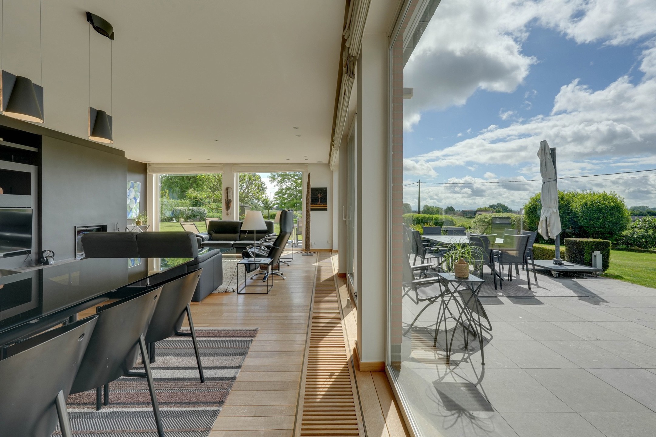 Schitterende villa uit de jaren 2000 met indrukwekkende volumes, bijzonder lumineus en goed onderhouden door de eigenaars, gebouwd met kwaliteitsmaterialen, gelegen op een totaal perceel van 2.298m², robuuste constructie met karakter als volgt samengesteld: