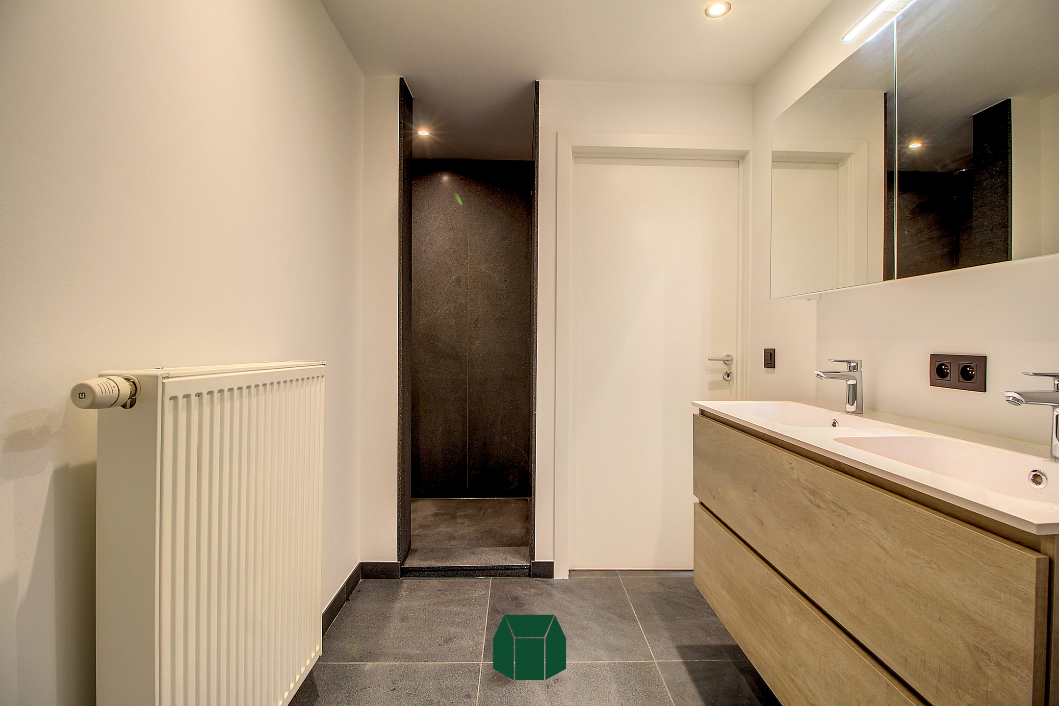 Recent is de badkamer vernieuwd met hoogwaardige materialen, waardoor je kunt genieten van een oase van ontspanning met een inloopdouche en dubbele lavabo. Boven is er ook nog een apart toilet voorzien.