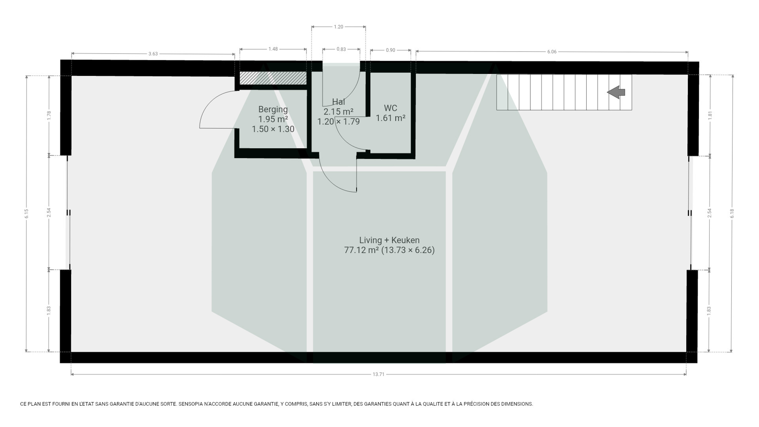 De houten parketvloer geeft een warme en sfeervolle uitstraling aan het bovengedeelte, terwijl de zeer ruime leefruimte talloze mogelijkheden biedt om jouw droominterieur te realiseren.
