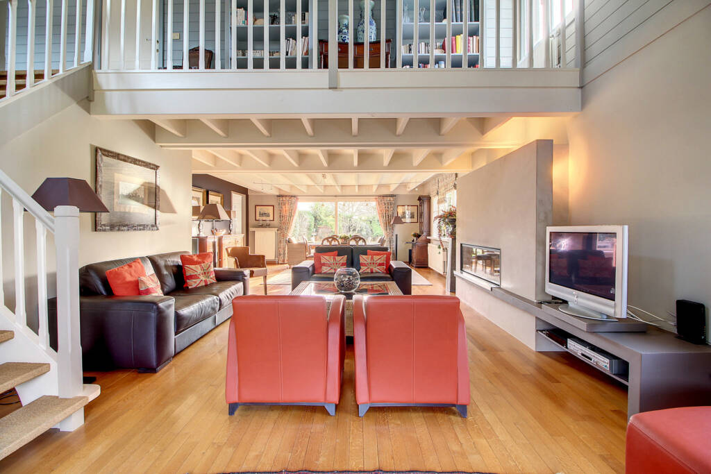 Au 1er étage : Une magnifique mezzanine desservant 2 grandes chambres à coucher de m² et m², une seconde salle d’eau avec douche et meuble lavabo, une pièce de rangements (possibilité de l’aménager facilement en une 3e chambre.