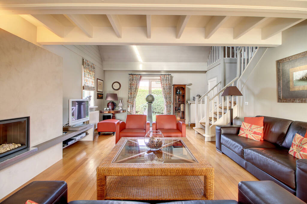 Au REZ : Hall d’entrée avec espace vestiaire desservant un somptueux séjour de m² avec l’escalier apparent et un insert moderne, une cuisine entièrement équipée récente (plaque de cuisson à induction, hotte, four, micro-ondes, chauffe-plat, lave-vaisselle, frigo, coin repas et nombreux rangements intégrés), une salle de bains composée d’une baignoire, d’une douche, d’un meuble lavabo double vasque et d’un WC, une buanderie avec espace chaufferie.