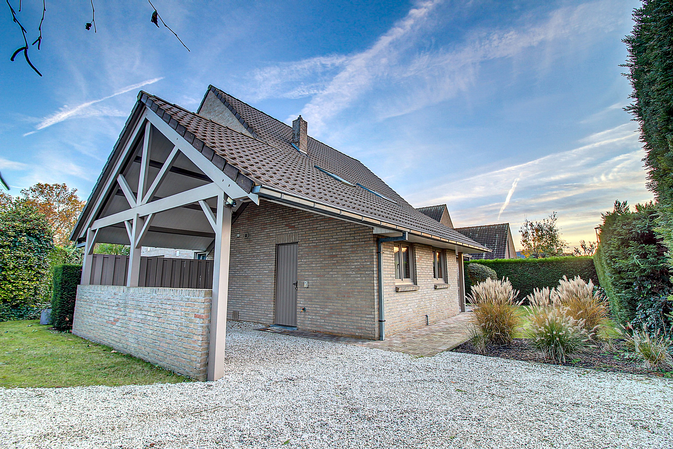 Extérieur : Superbe parcelle totale de 717m², une terrasse en pavés avec store banne, un jardin clôturé et arboré exposé « SUD-EST » sans vis-à-vis, passages latéraux, 2 places de parking privatives (dont un carport).