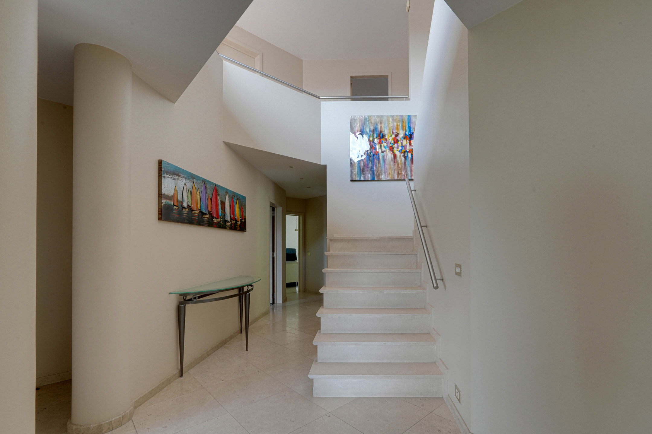 Via de prachtige open trap bereikt u de bovenverdieping met een overloop die uitkomt op een dakterras, wat zorgt voor aangename lichtinval dankzij de grote ramen. De overloop geeft toegang tot vier ruime slaapkamers, een badkamer met sauna, toilet en nog een zolder.