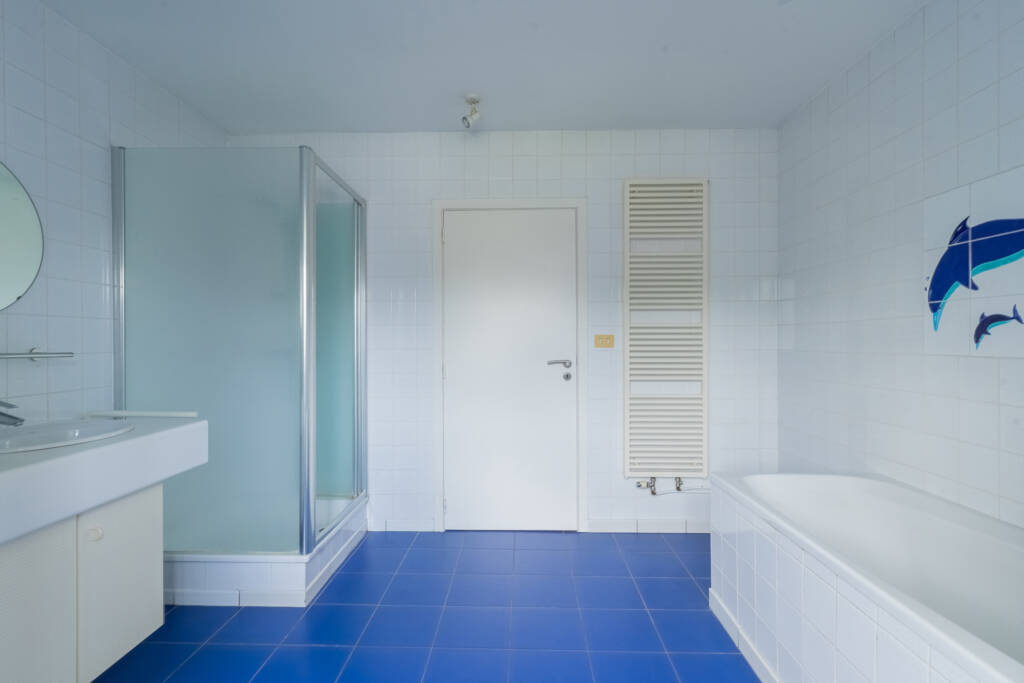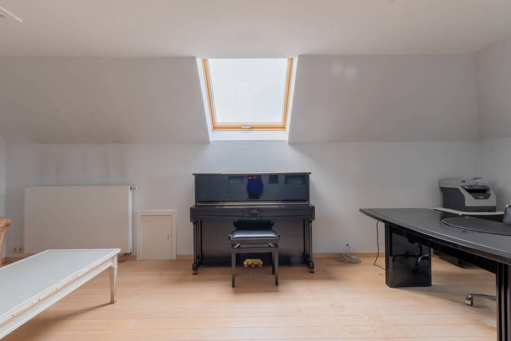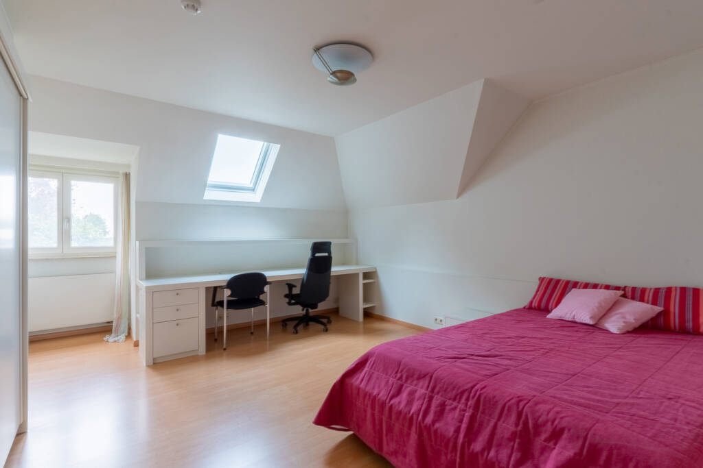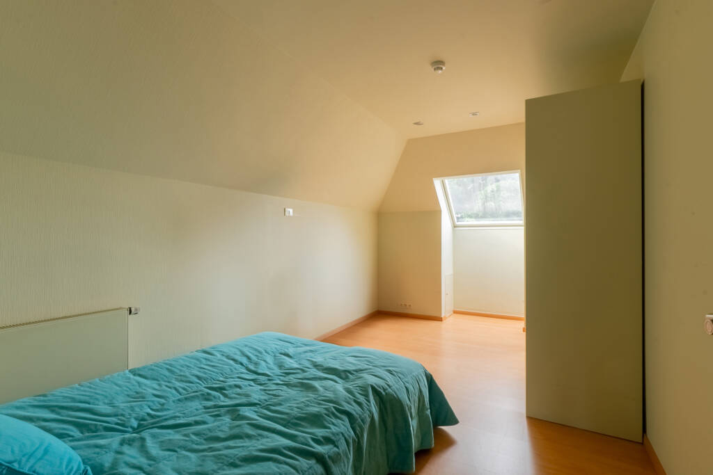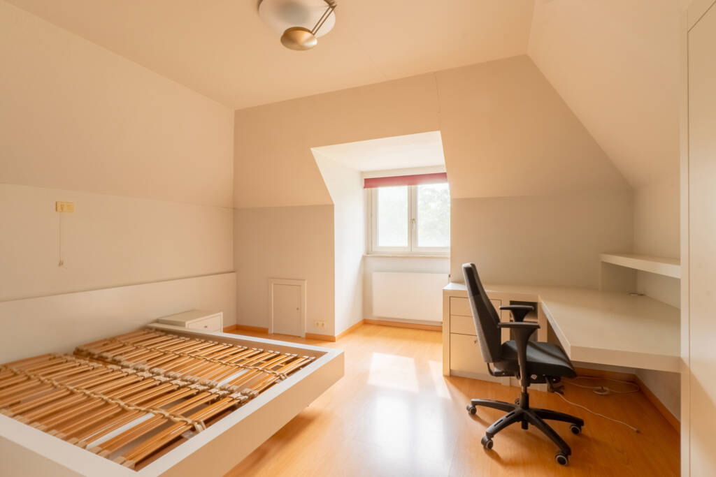 Op de bovenverdieping hebben we het plezier om 4 ruime kamers te ontdekken met bijna steeds ingebouwde kasten en kinderbadkamer met toilet.