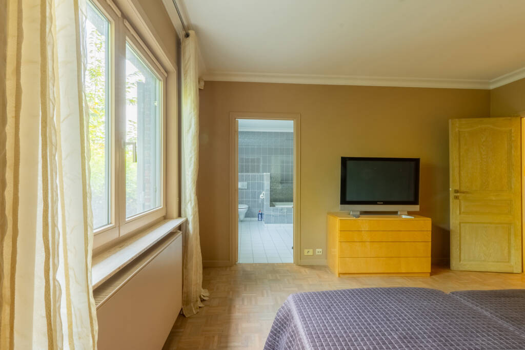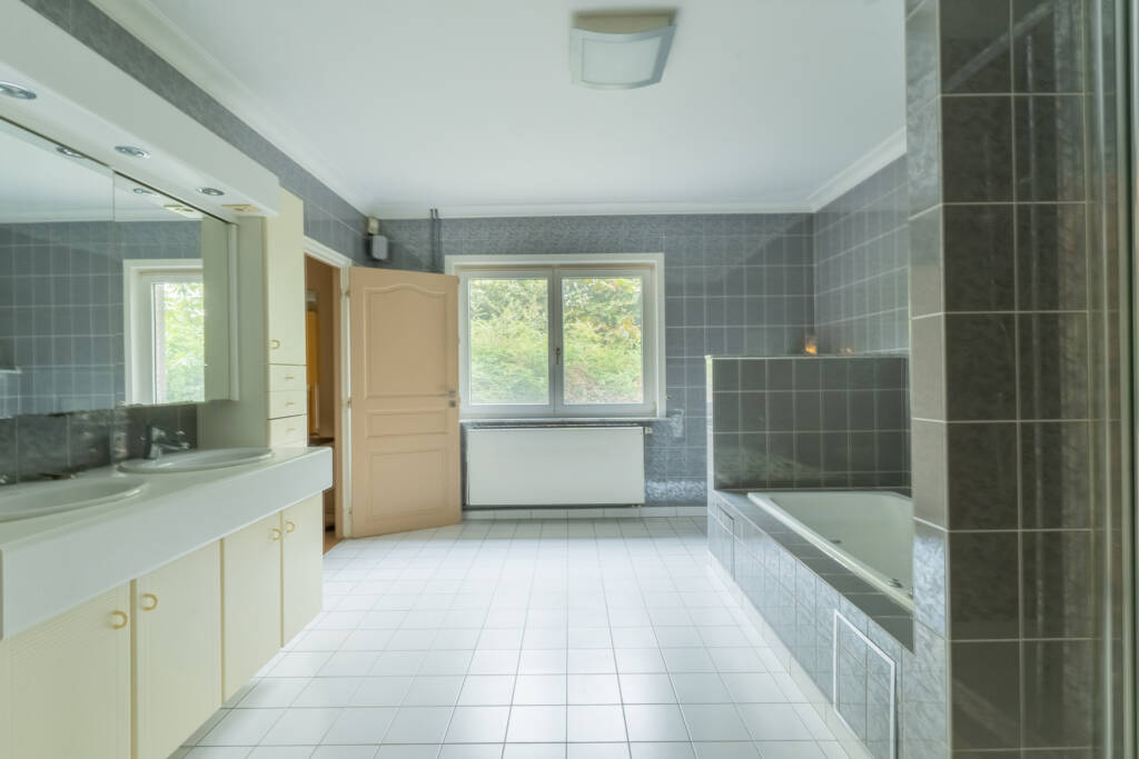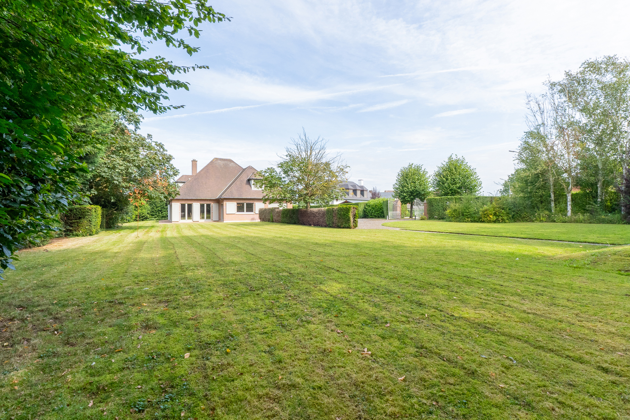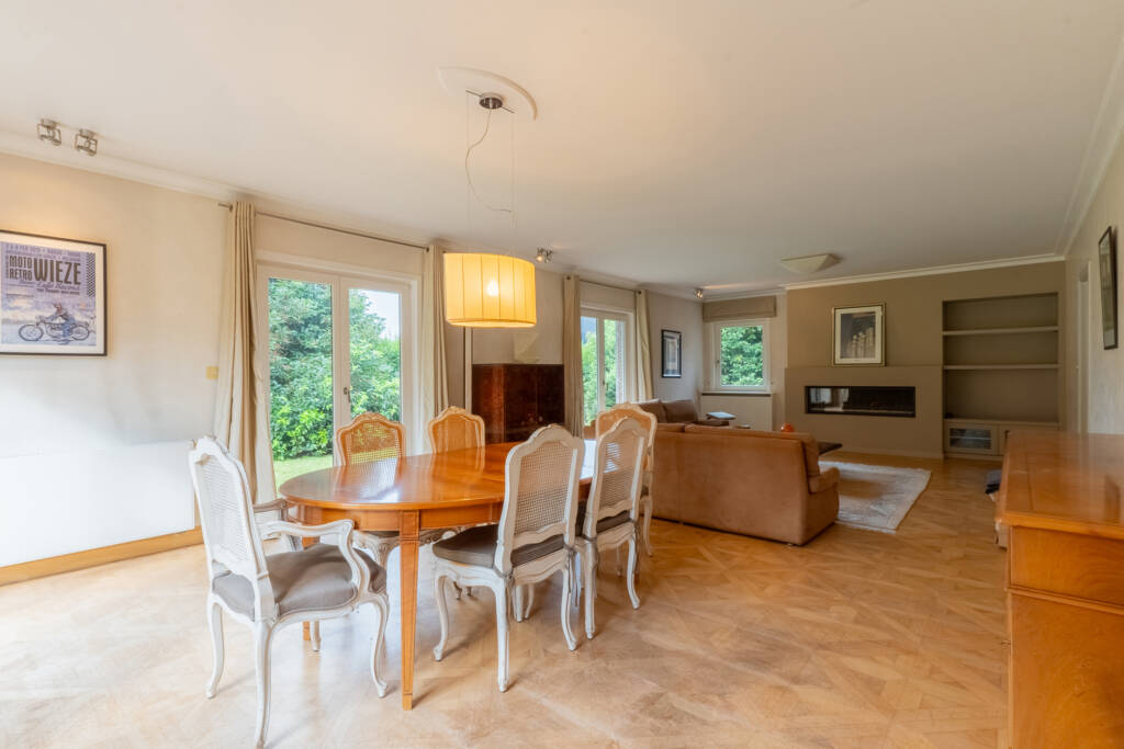Traditionele villa van de jaren ’90 met alle comfort en vooral veel ruimte gelegen op een perceel van ongeveer 2500m² met 2 toegangen, veel parkeerruimte en een mooi aangelegde tuin.