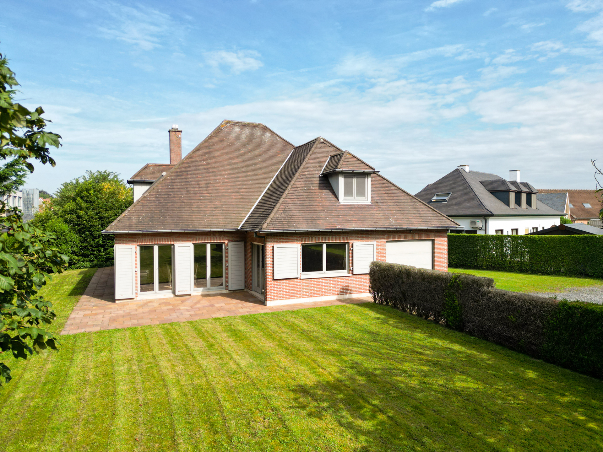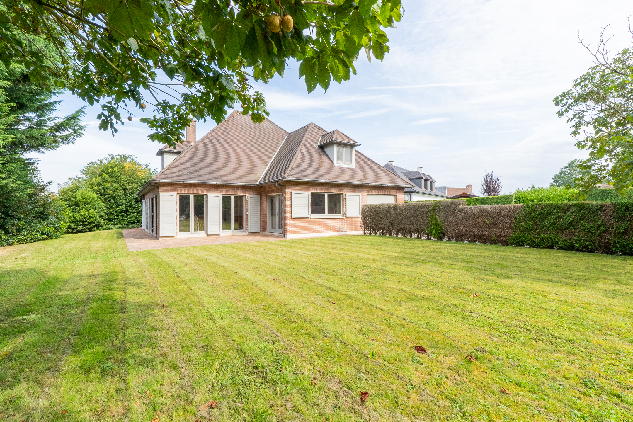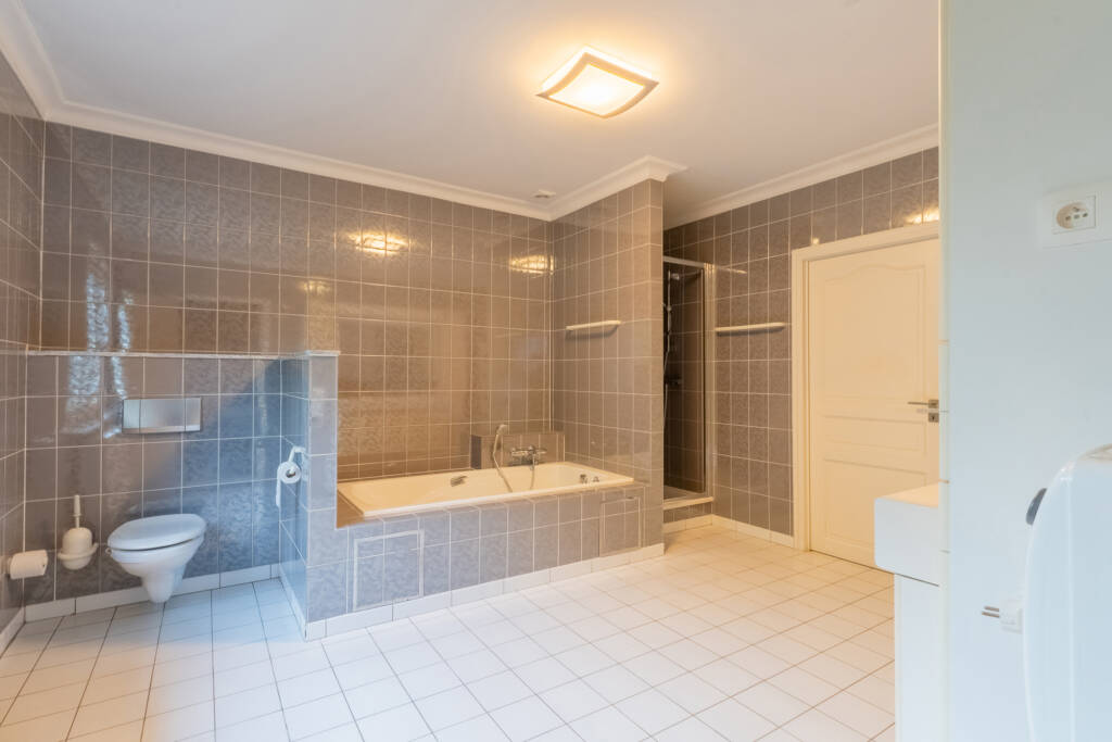 Traditionele villa van de jaren ’90 met alle comfort en vooral veel ruimte gelegen op een perceel van ongeveer 2500m² met 2 toegangen, veel parkeerruimte en een mooi aangelegde tuin.