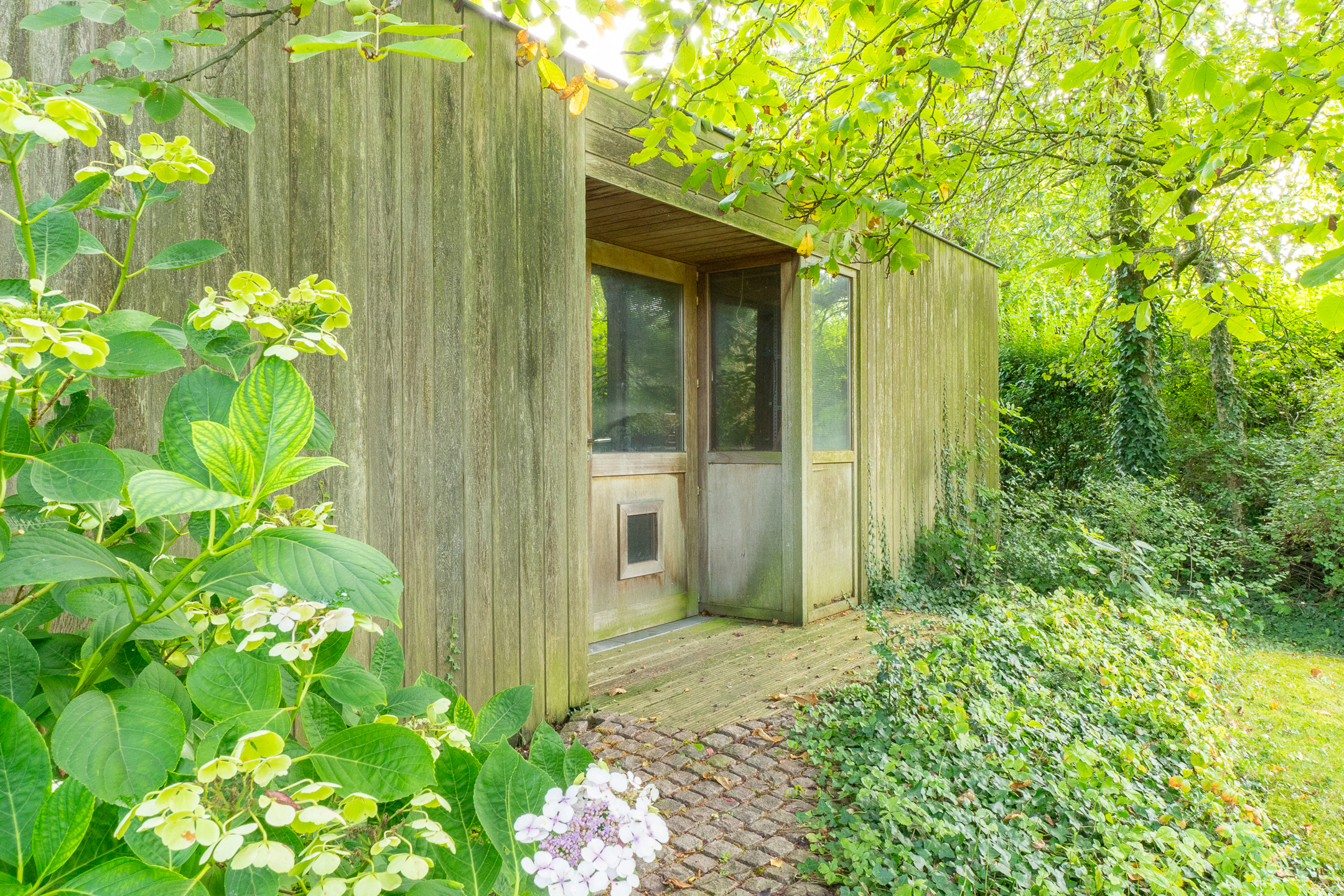 Buiten kunnen we genieten van een ruim terras en een tuin met diverse boomsoorten, ook een tuinhuisje en een 2e houten bergruimte maken het geheel compleet.Deze villa is gebouwd met nobele afwerking, massief parket, cv gas, regenputwater, dubbele beglazing …. en vooral een EPC B